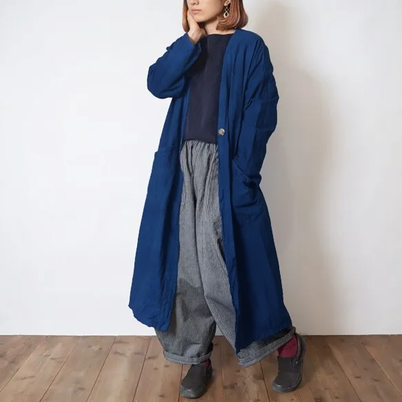 【福袋】コットン羽織りガウン/インディゴ + よろけ縞バルーンパンツ/グレー