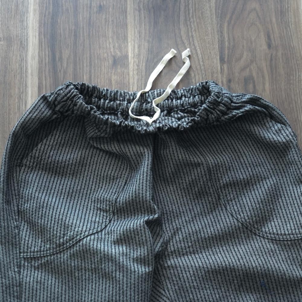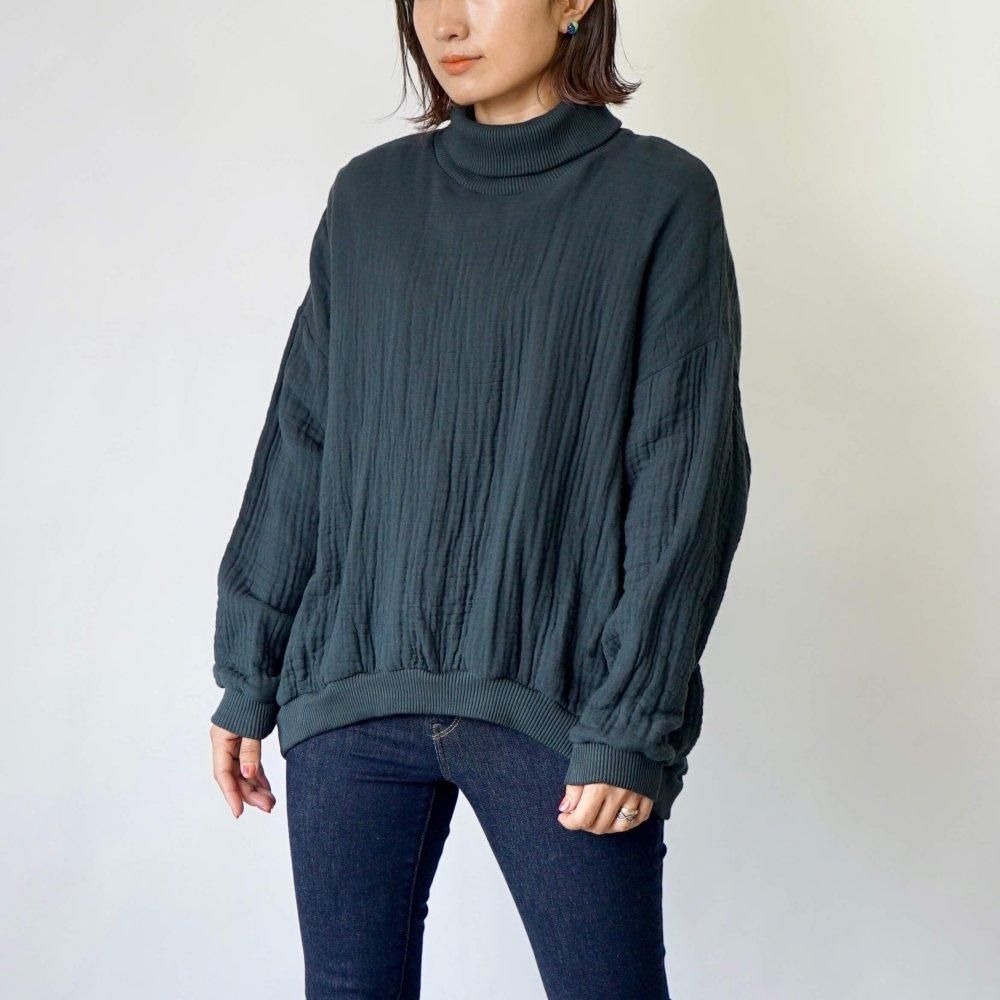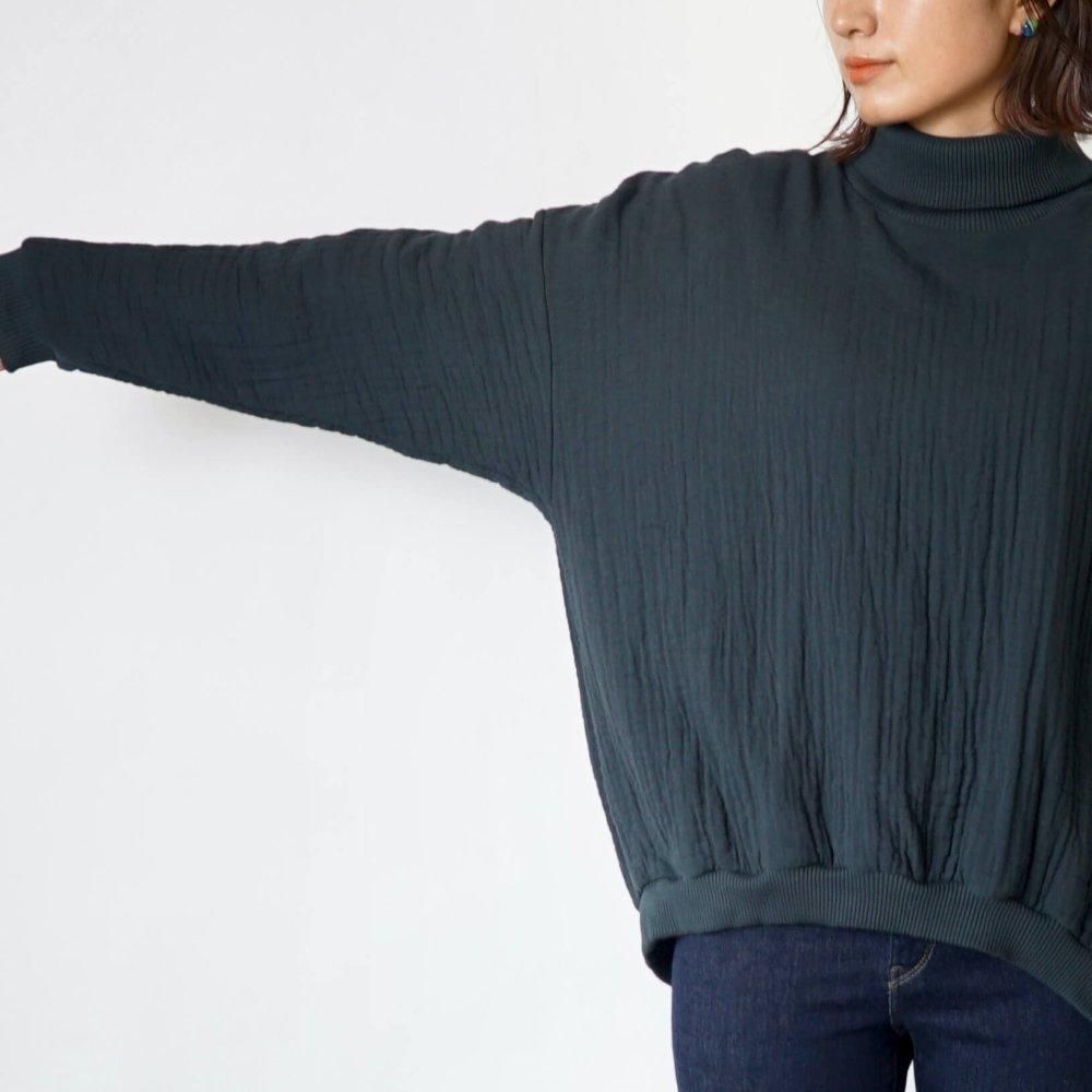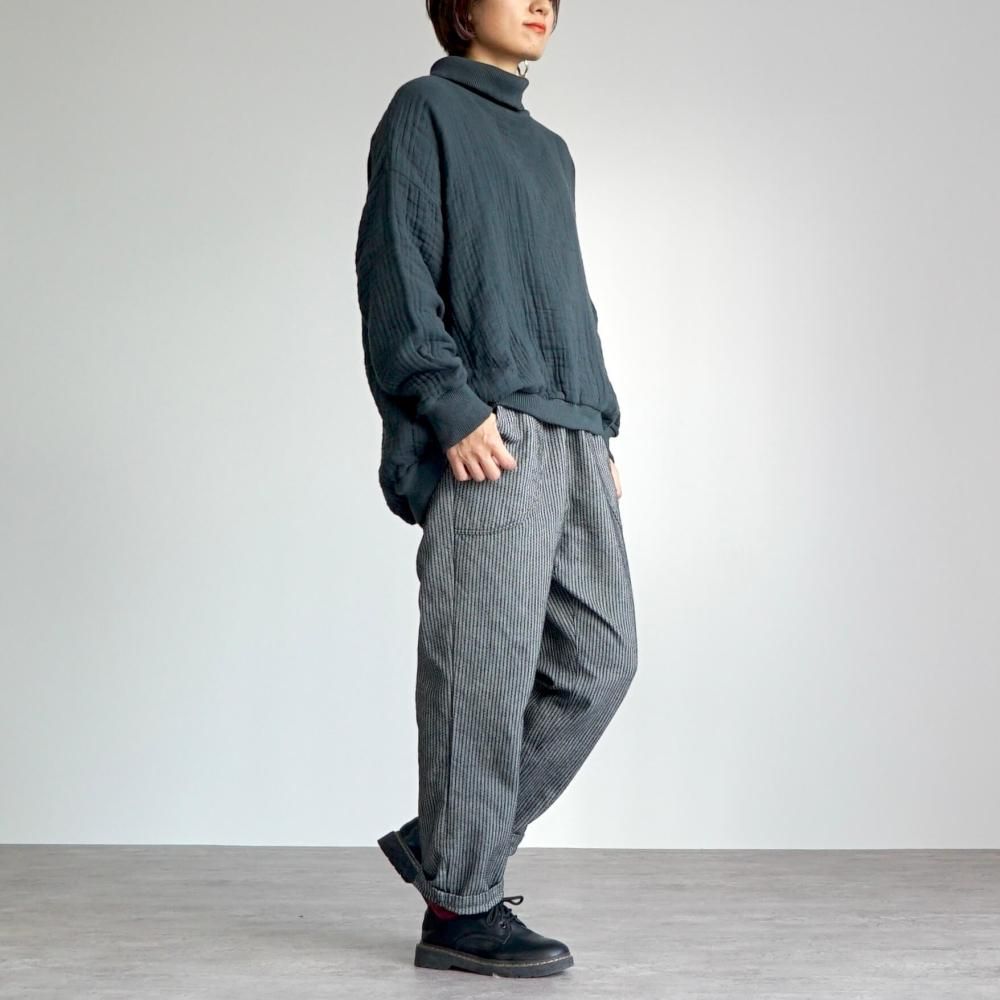 【福袋】よろけ縞一本刺し子 スッキリサルエルパンツ/グレー+タートルネックトレーナー/ブラック