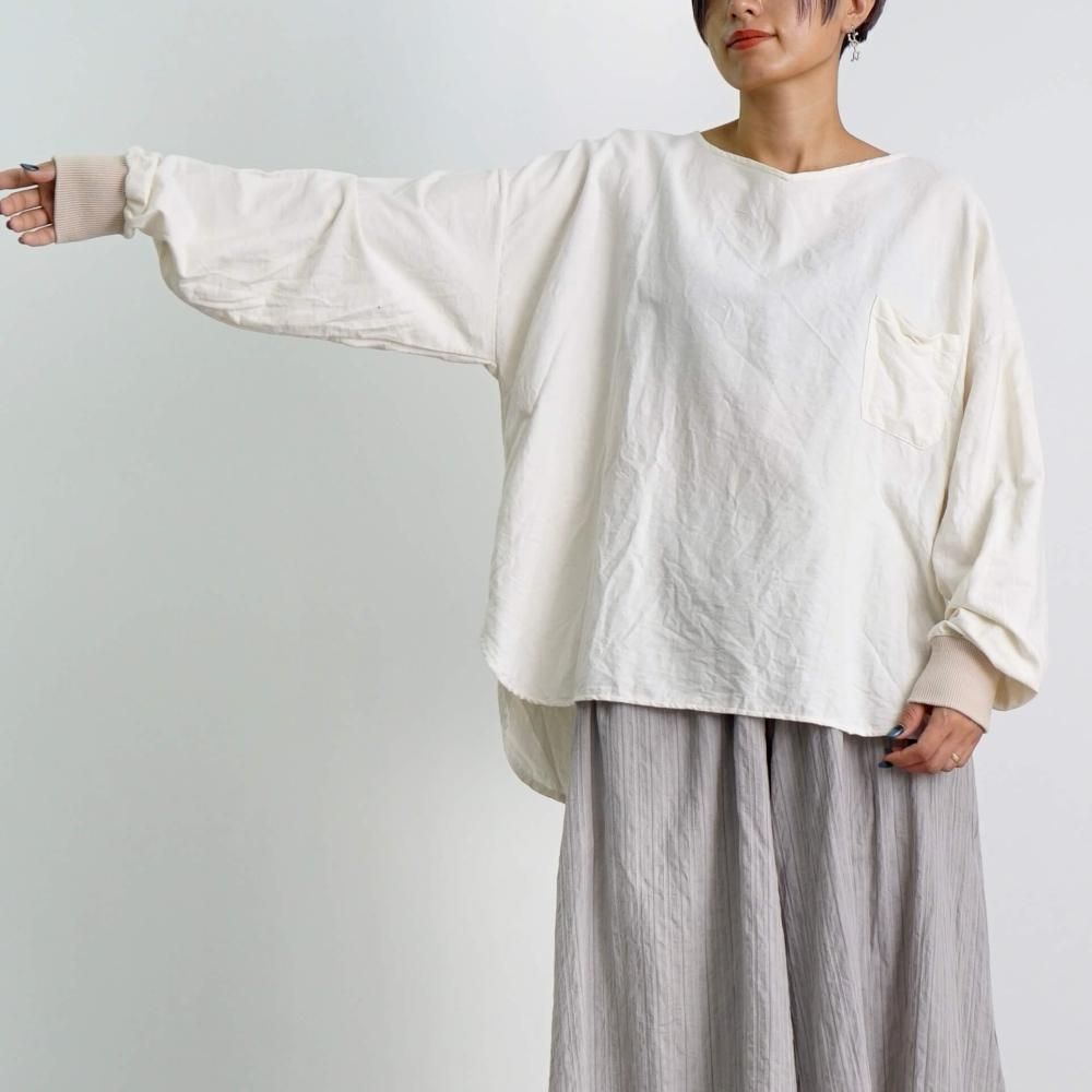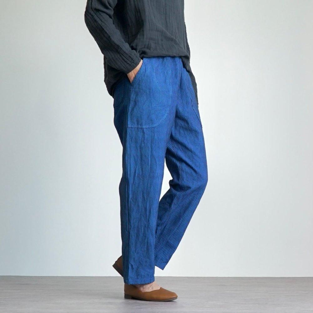 【福袋】ドロップショルダーVネックロンT/生成り+一本刺し子 スッキリサルエルパンツ/ブルー