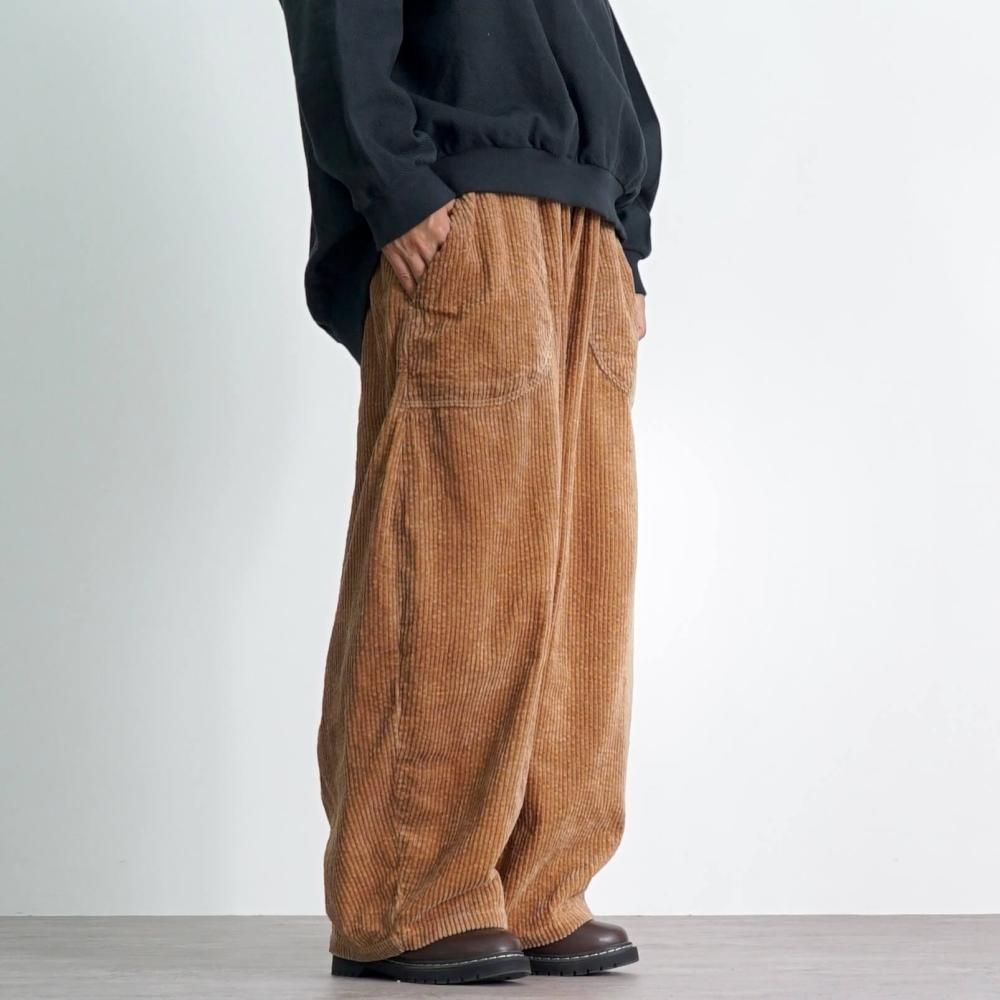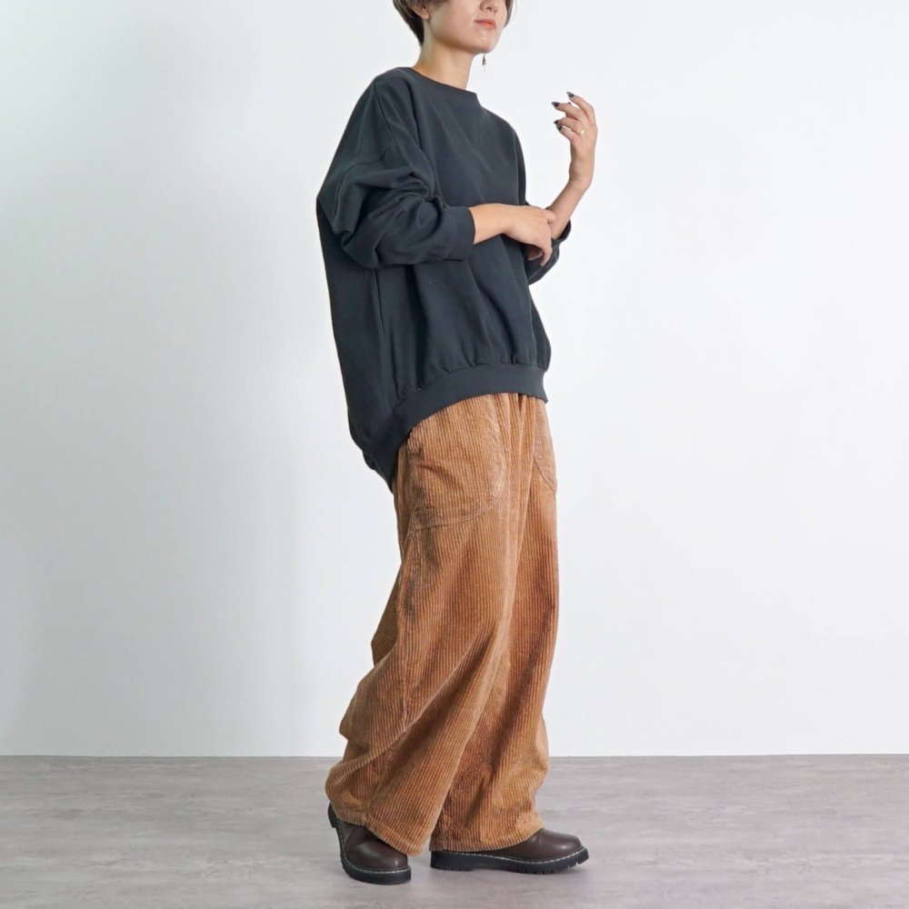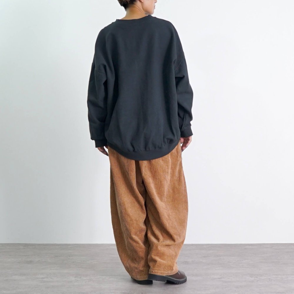 【福袋】刺し子織ラウンドトレーナー/ブラック+コーデュロイバルーンパンツ/ブラウン