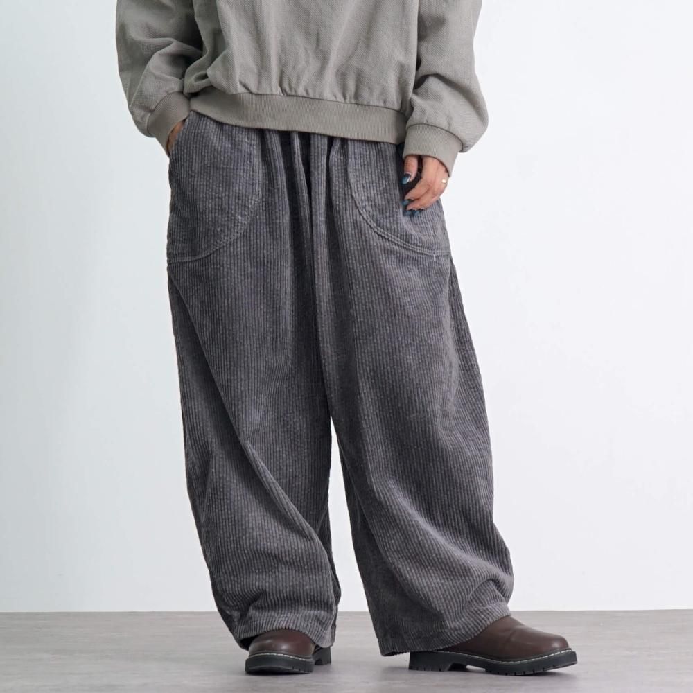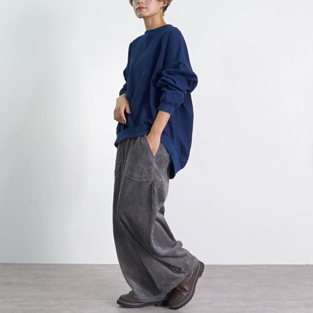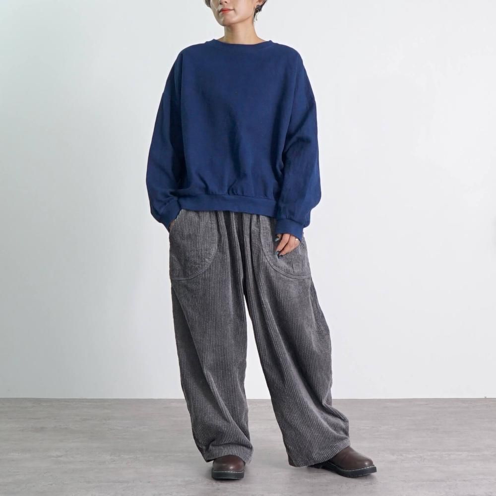 【福袋】刺し子織ラウンドトレーナー/ネイビー+コーデュロイバルーンパンツ/グレー