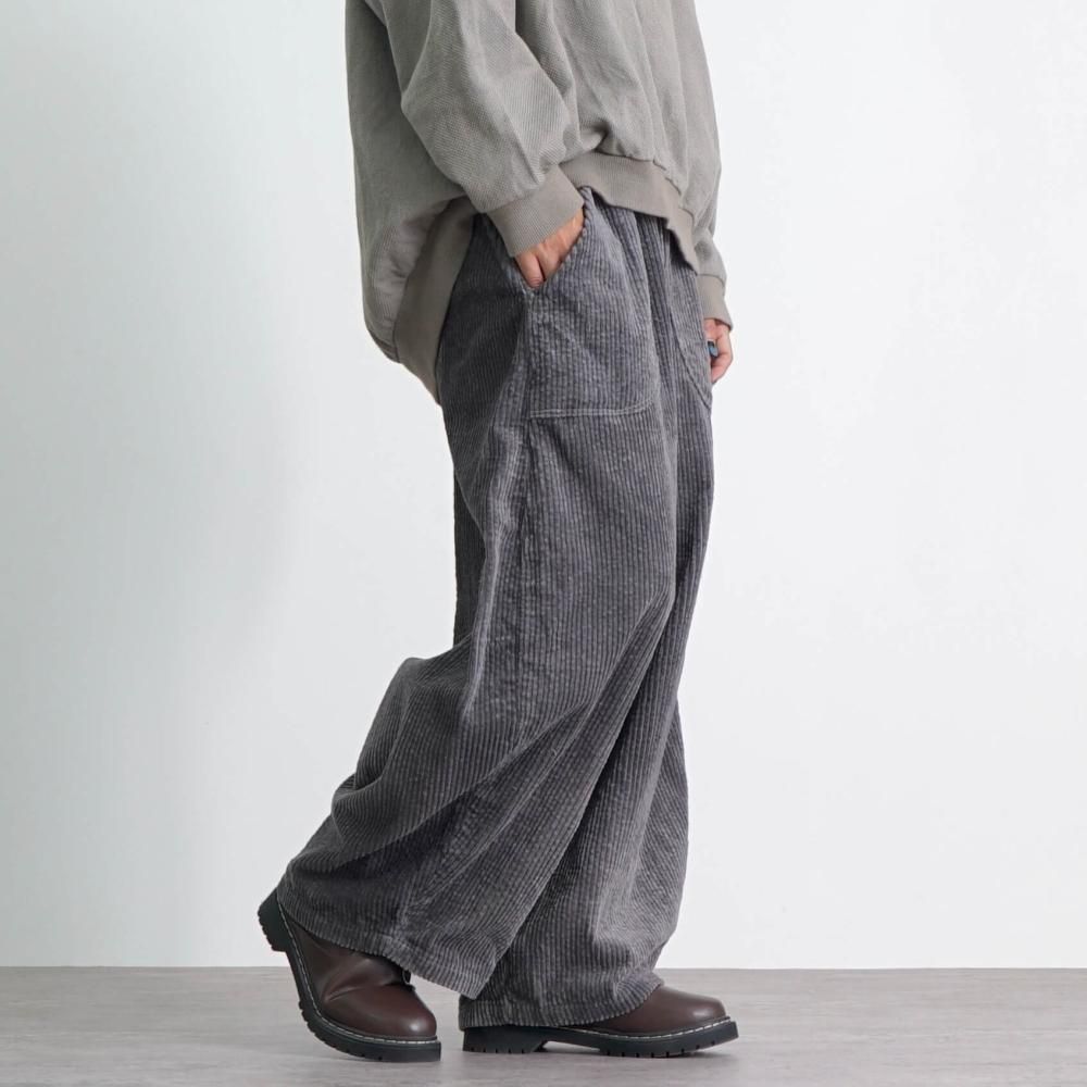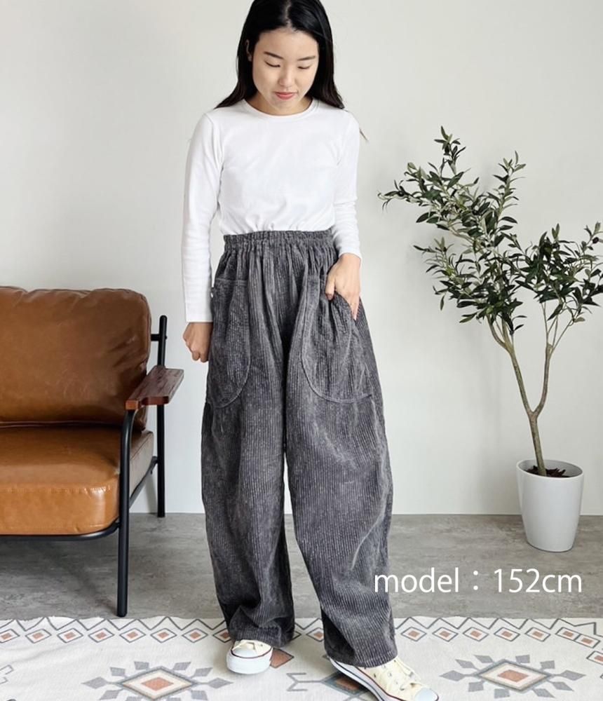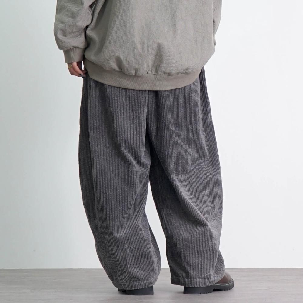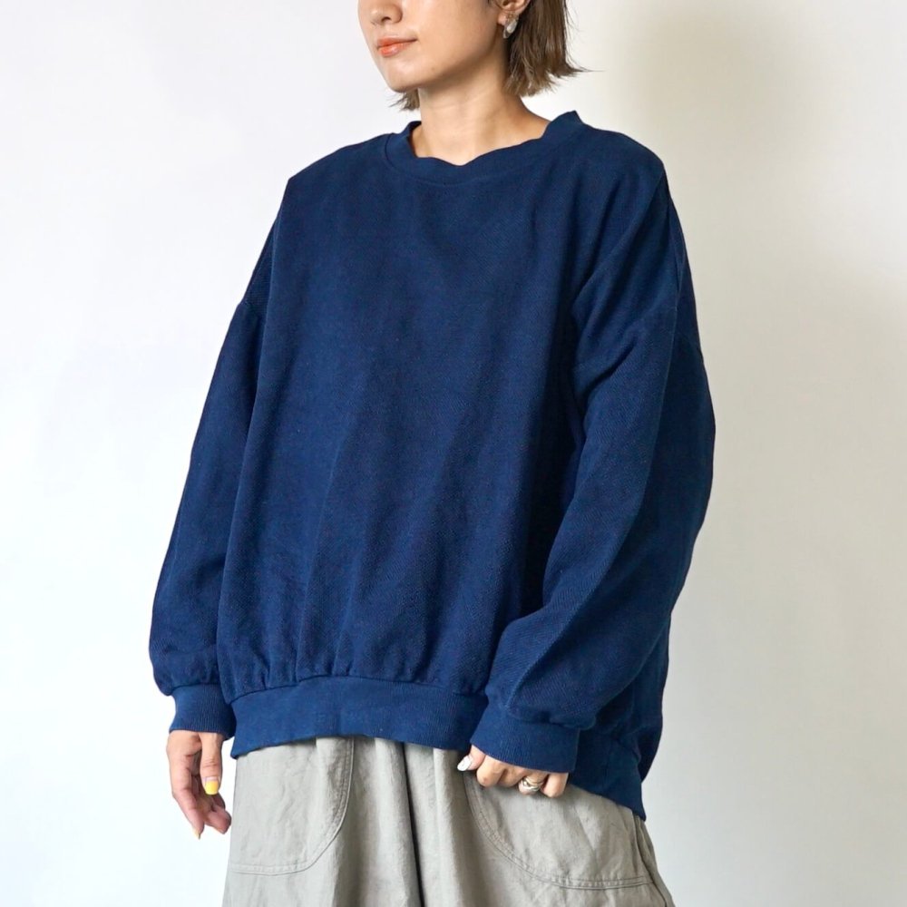 【福袋】刺し子織ラウンドトレーナー/ネイビー+コーデュロイバルーンパンツ/グレー