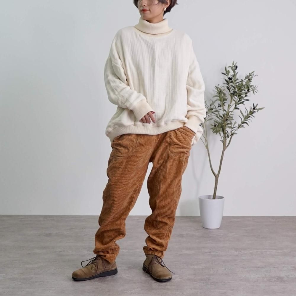 【福袋】タートルネックトレーナー6重ガーゼ/生成り+コーデュロイキャンプワークパンツ/ブラウン