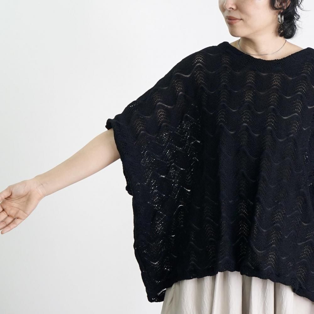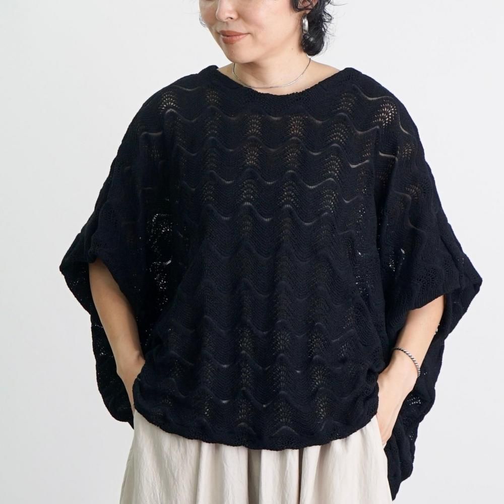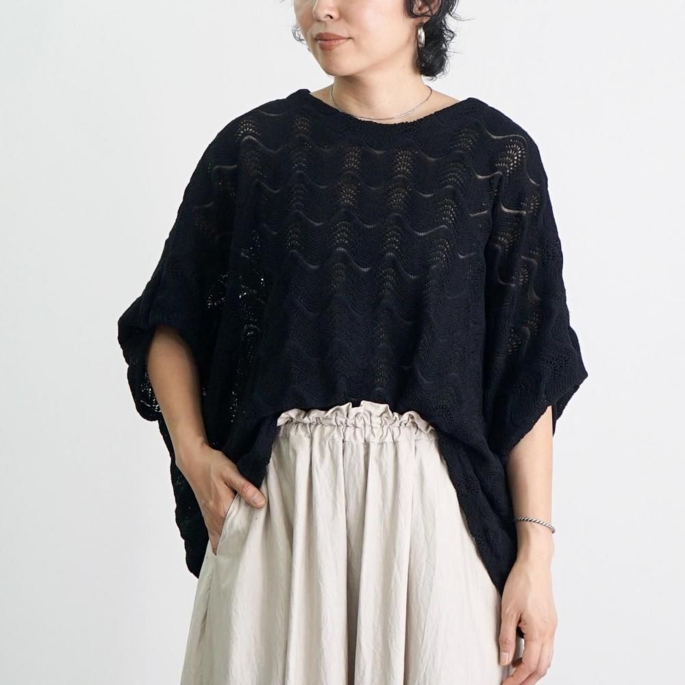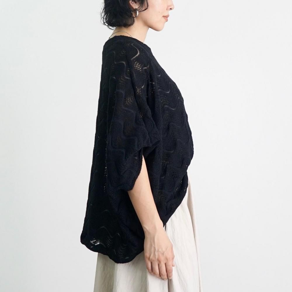 ボートネックレイヤードニットTシャツ/ブラック/尾州ニット