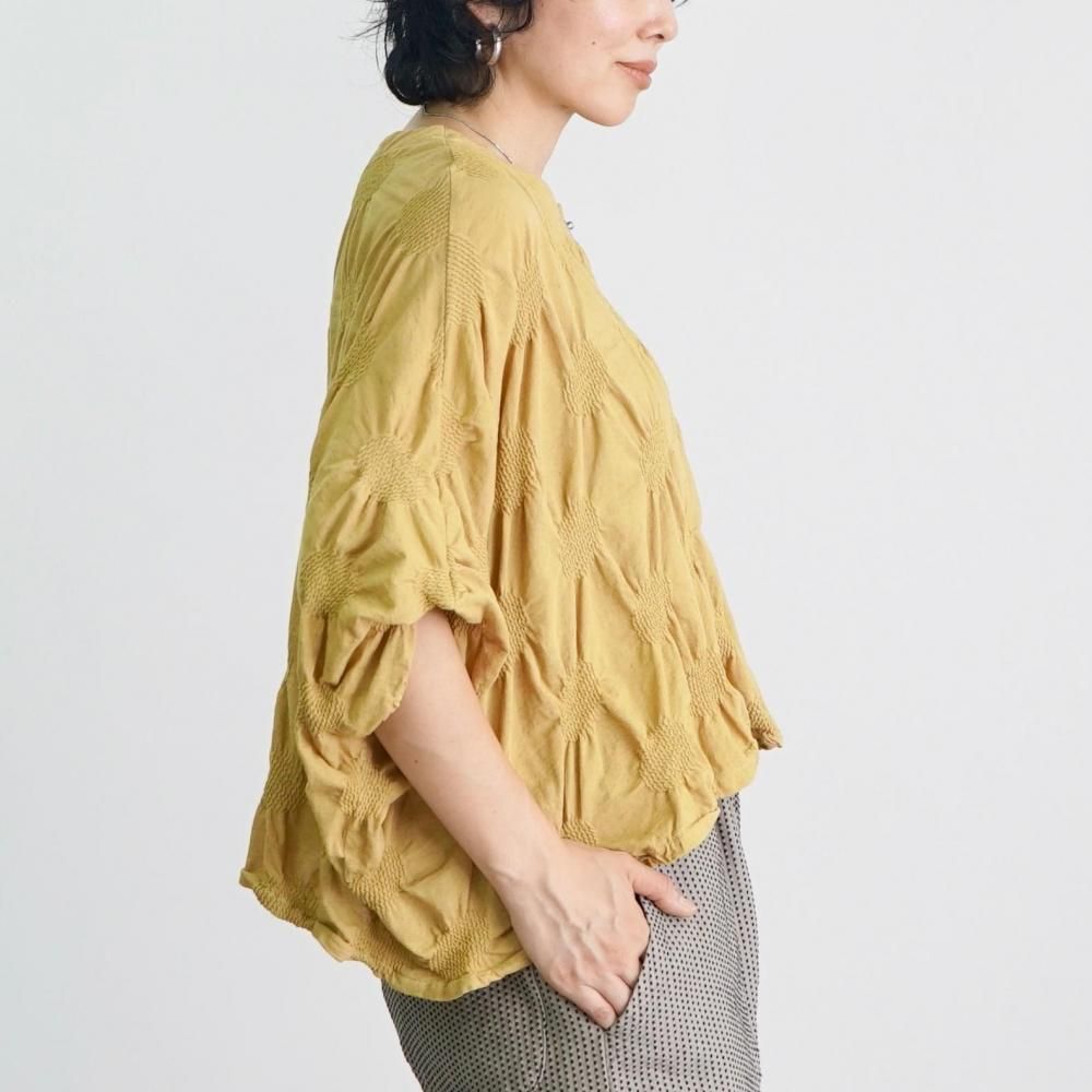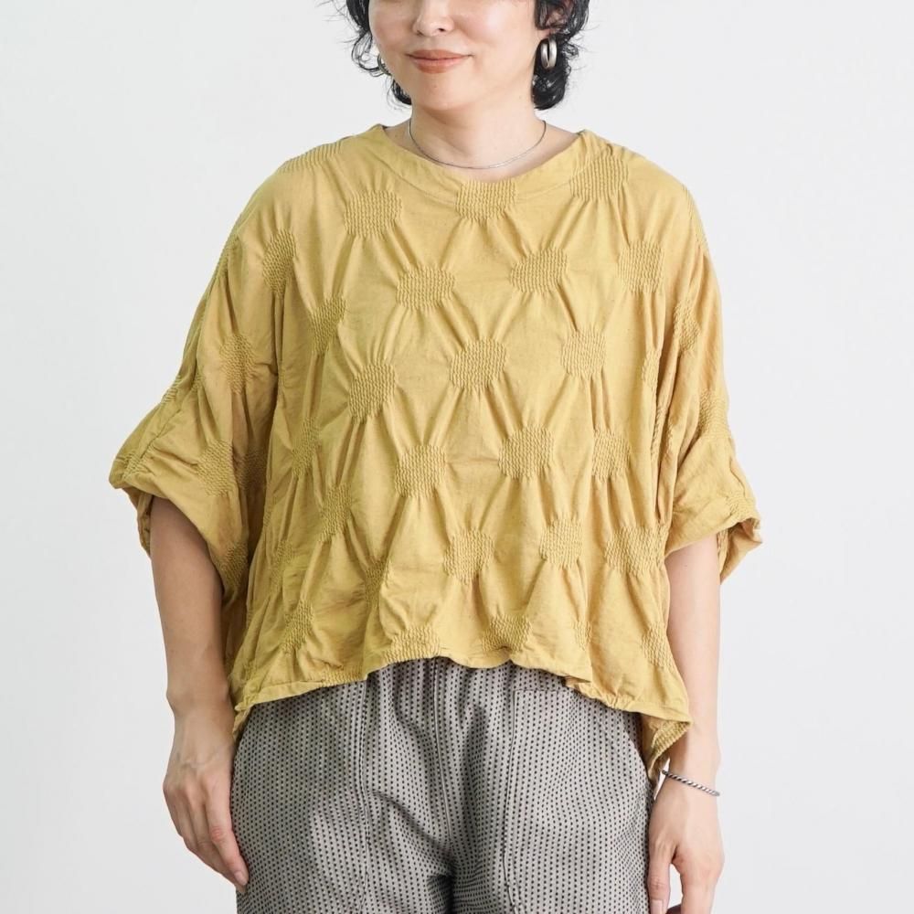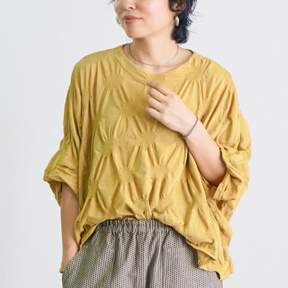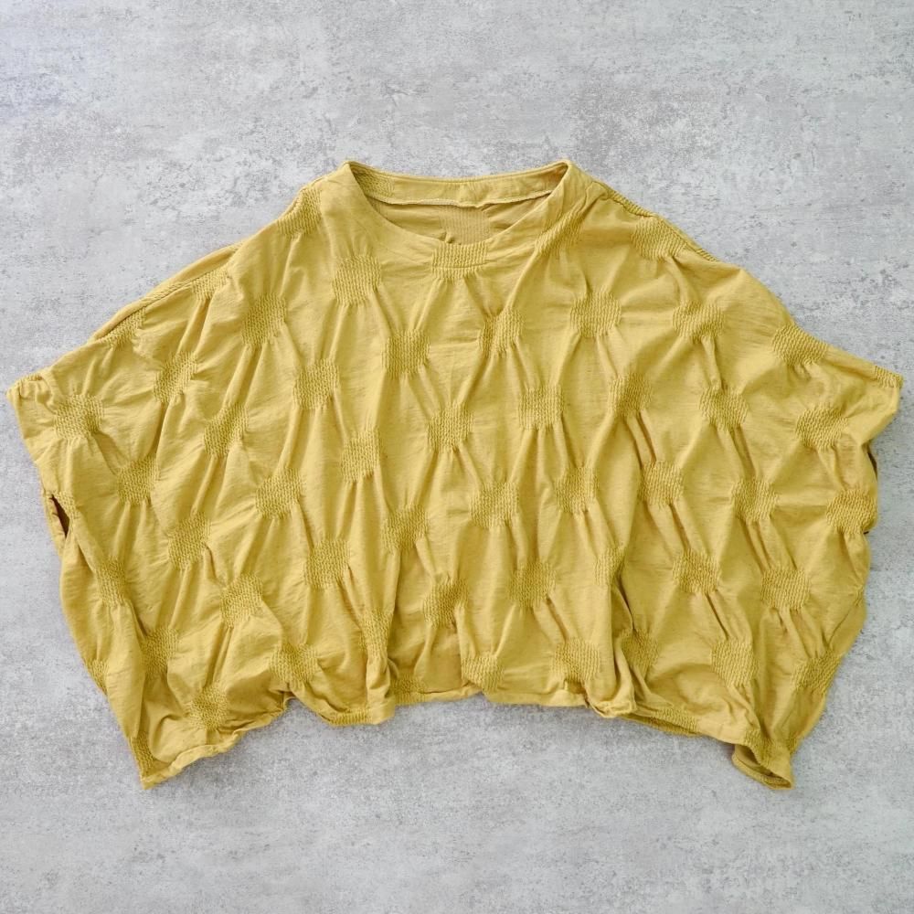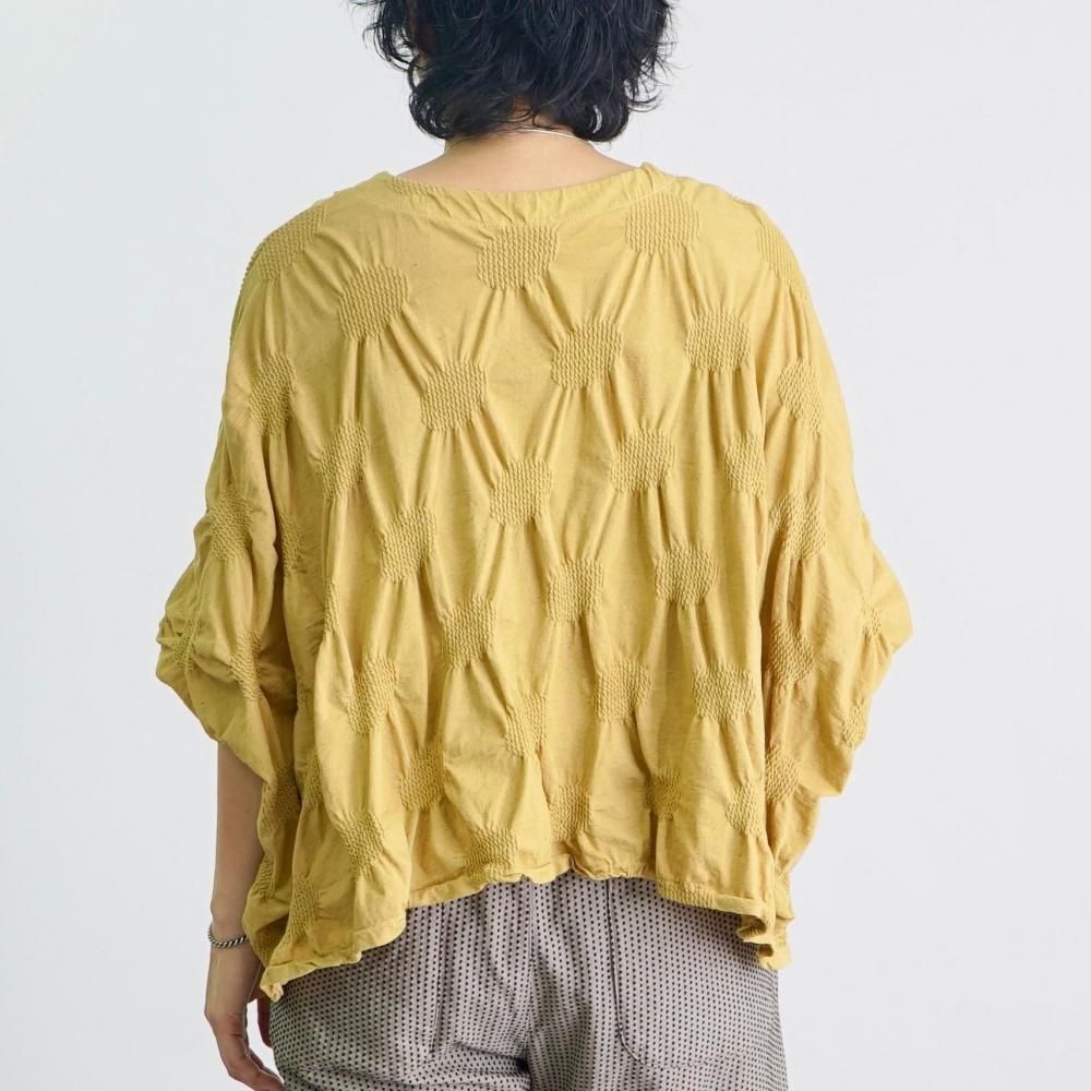 ボートネックドットニットTシャツ/イエロー/尾州ニット