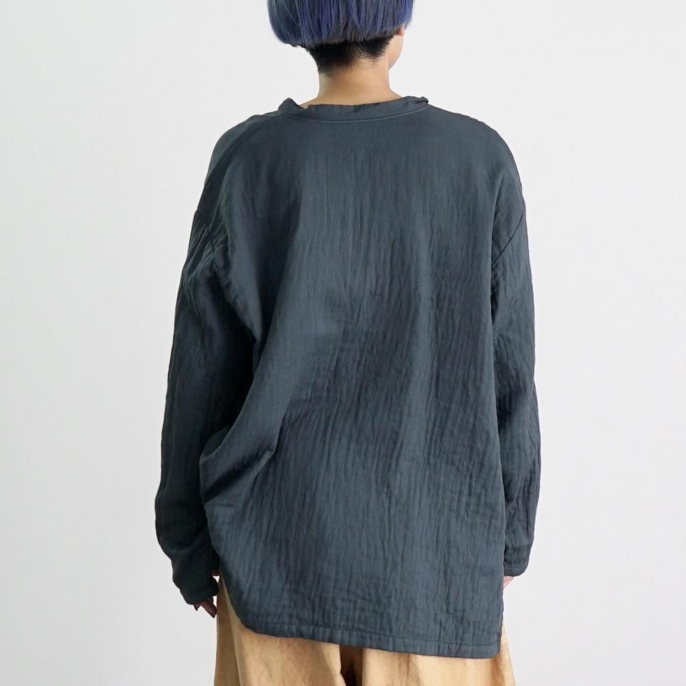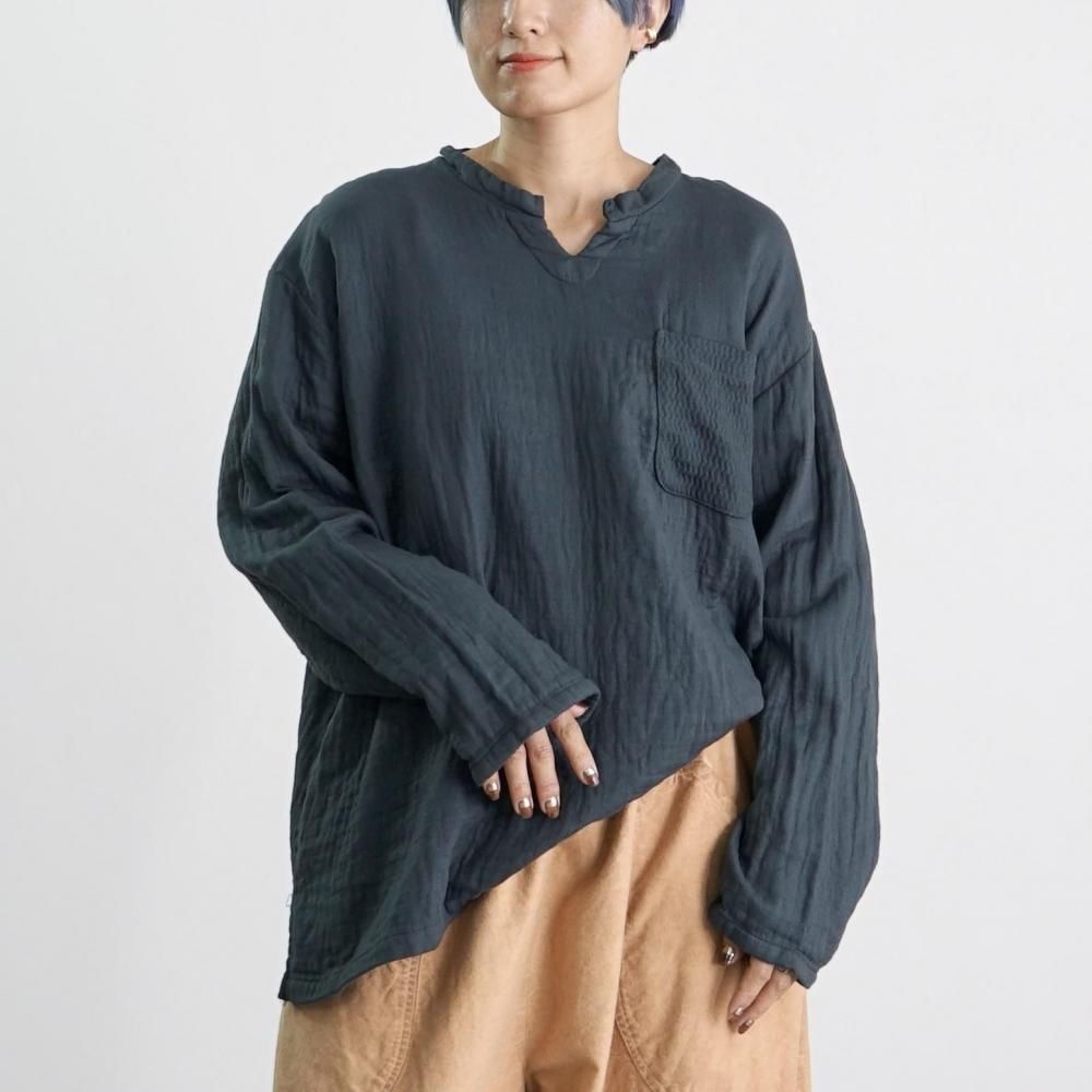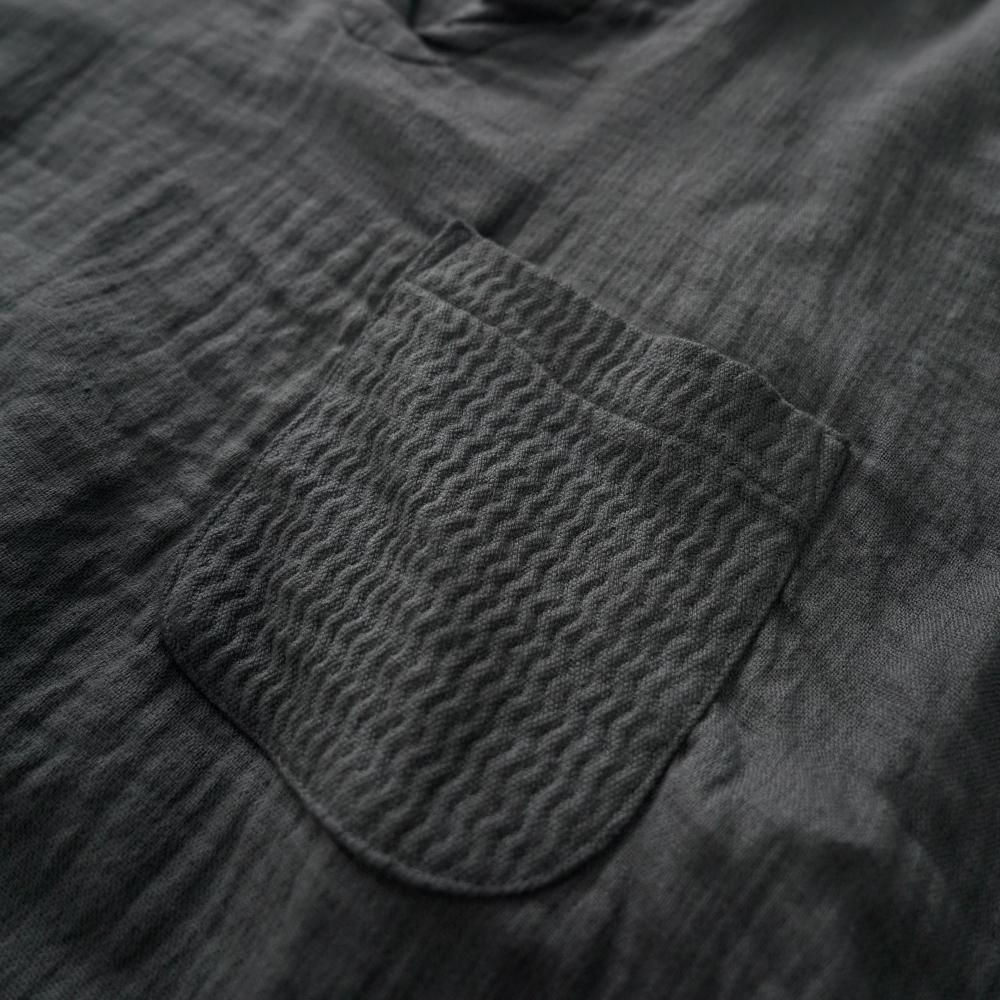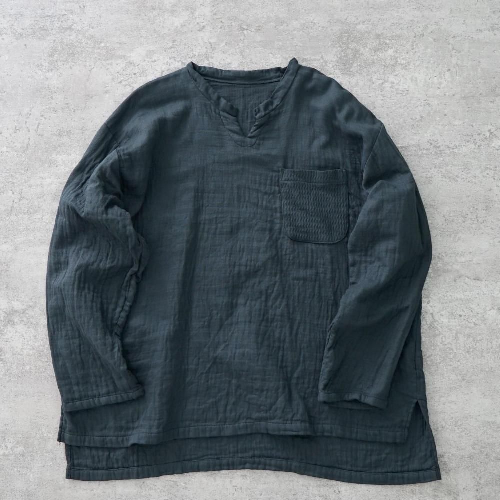 キーネックガーゼロンT甘よりポケット付/ブラック/今治産甘撚り3重ガーゼ