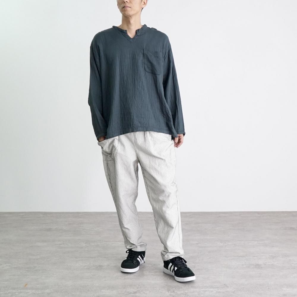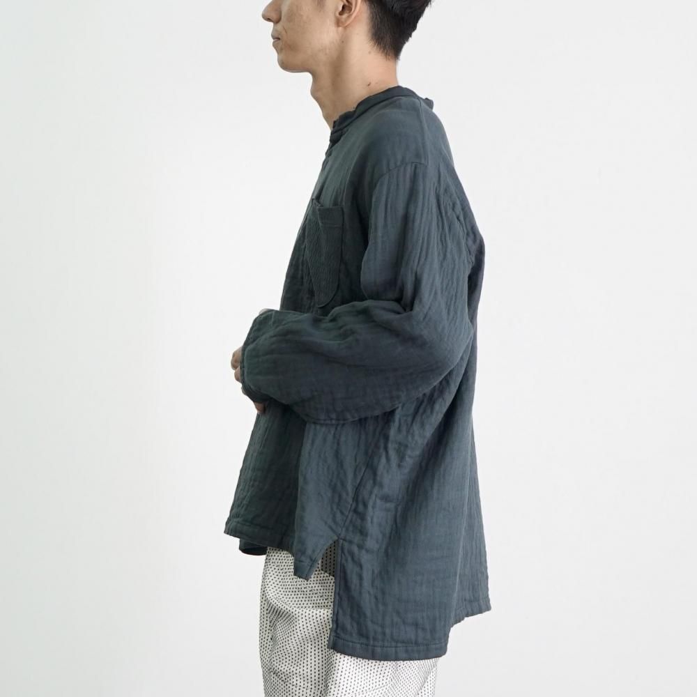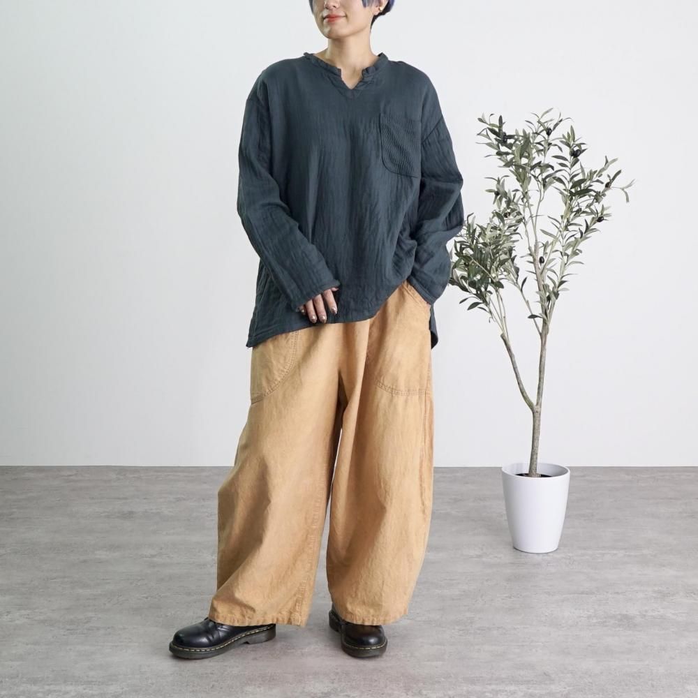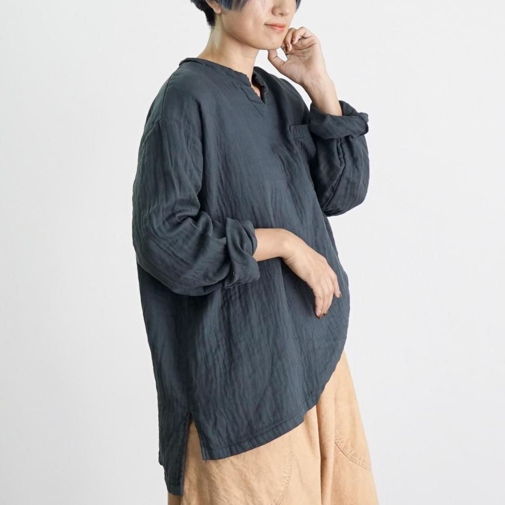 キーネックガーゼロンT甘よりポケット付/ブラック/今治産甘撚り3重ガーゼ