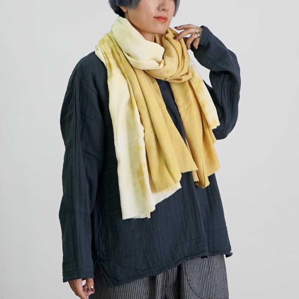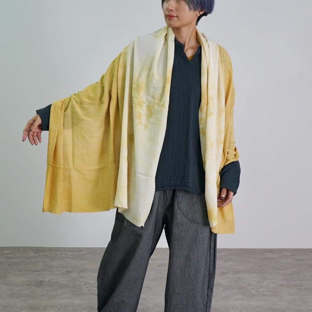 薄手コットン大判ストール/ハーフまだらイエロー/知多木綿