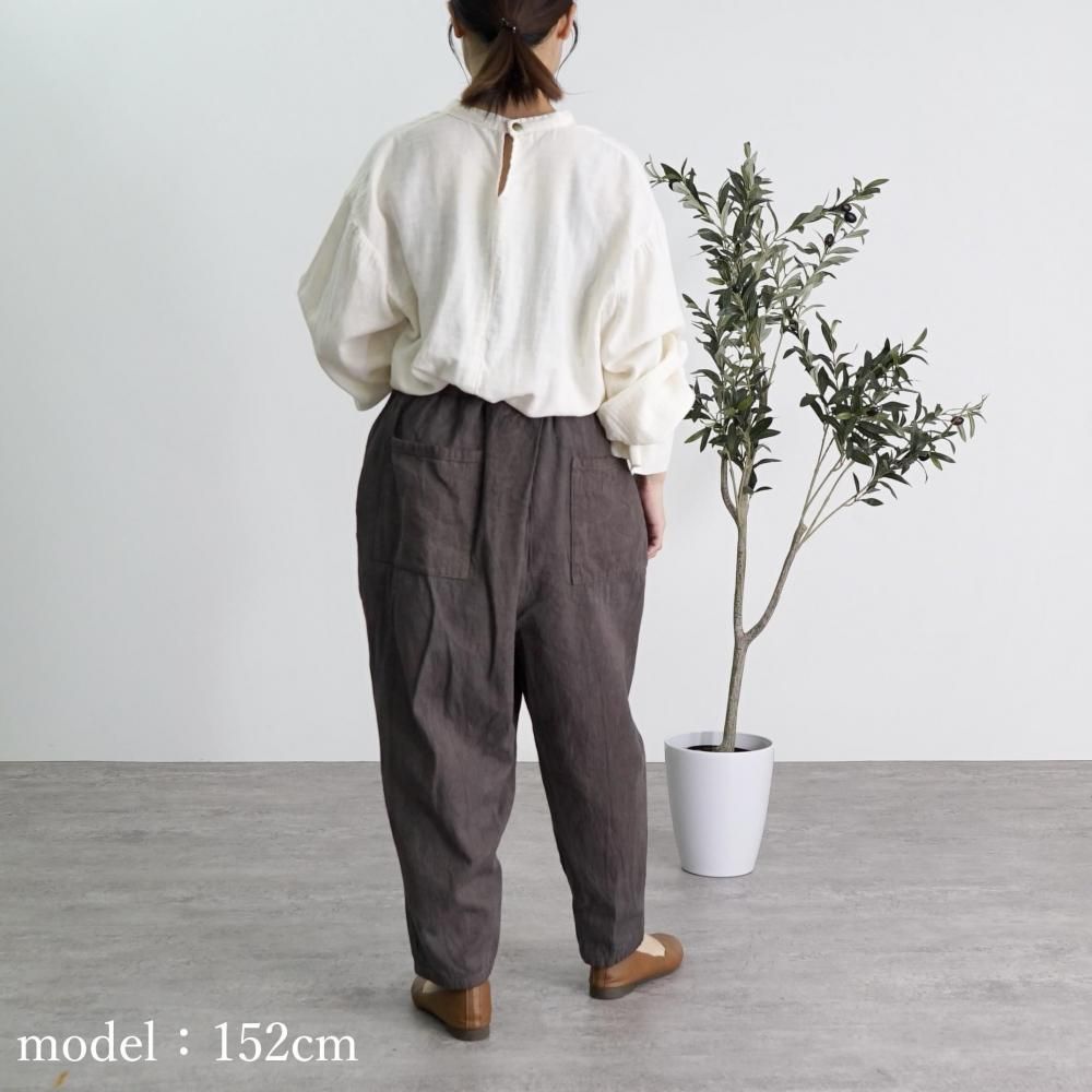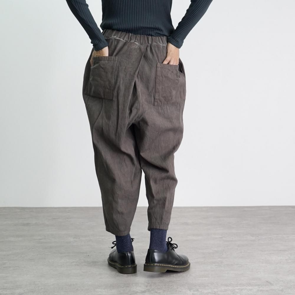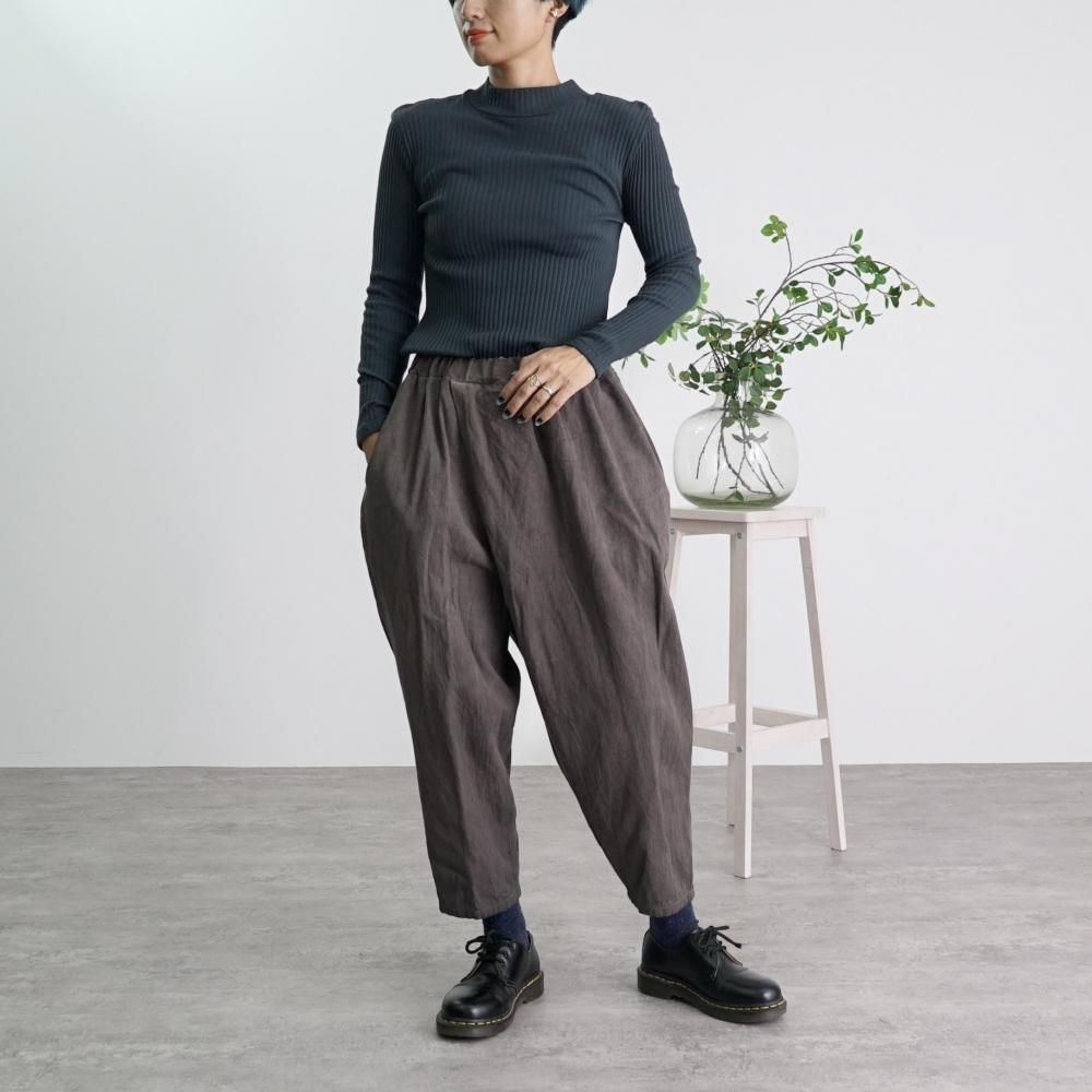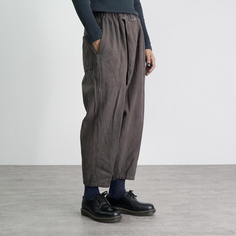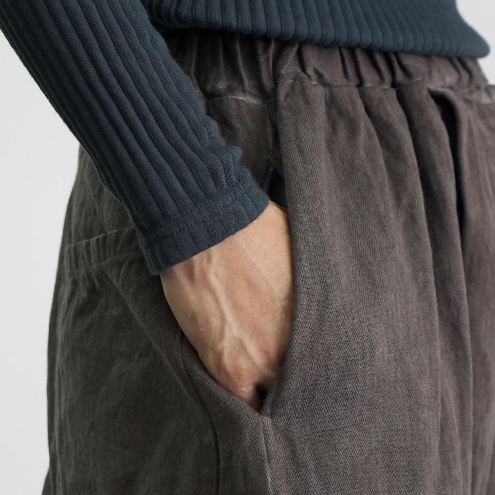 ペグトップタックパンツ/ヘリンボーン/グレー
