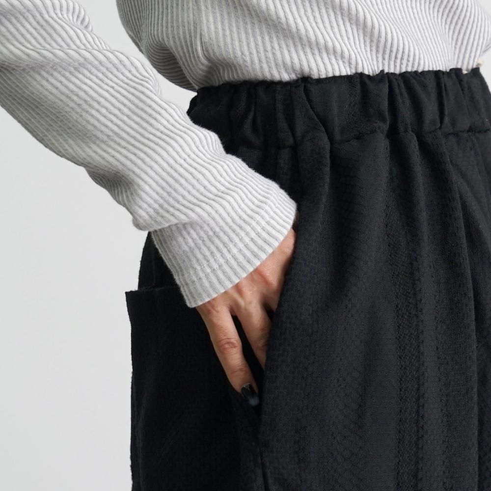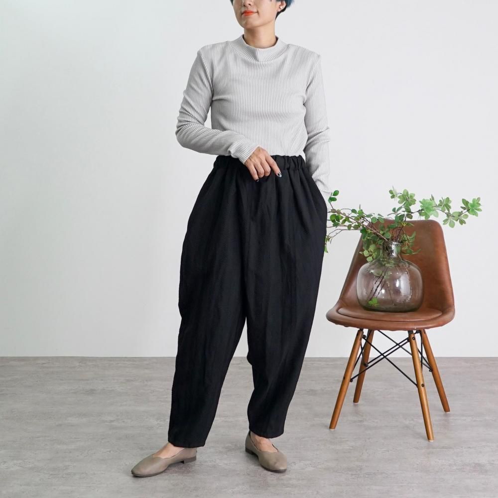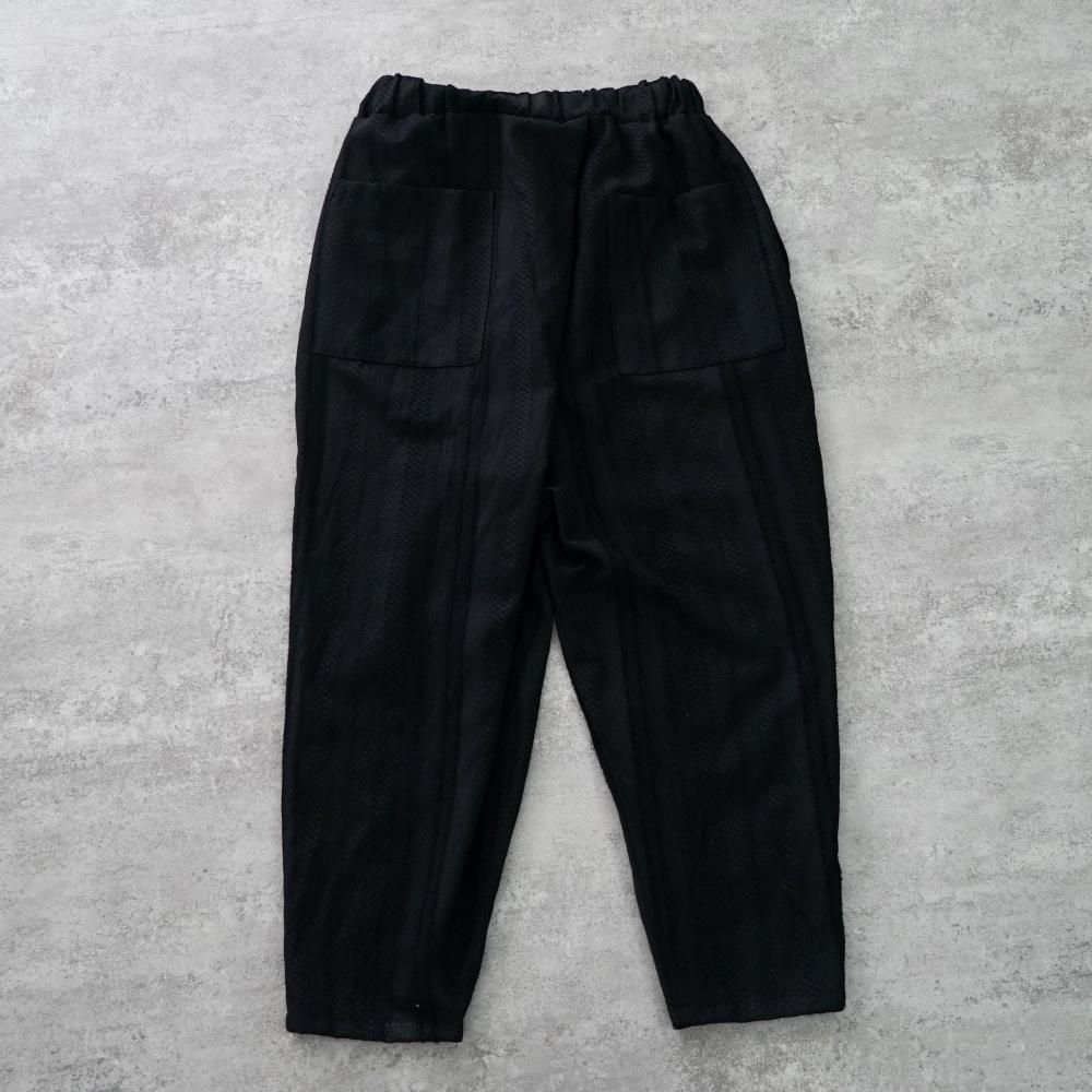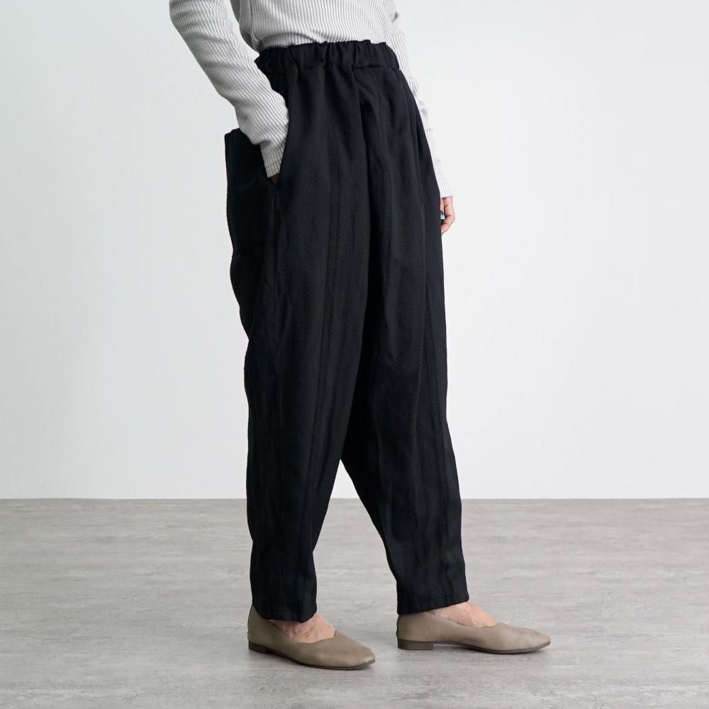 ペグトップタックパンツ/黒ストライプ/尾州織物