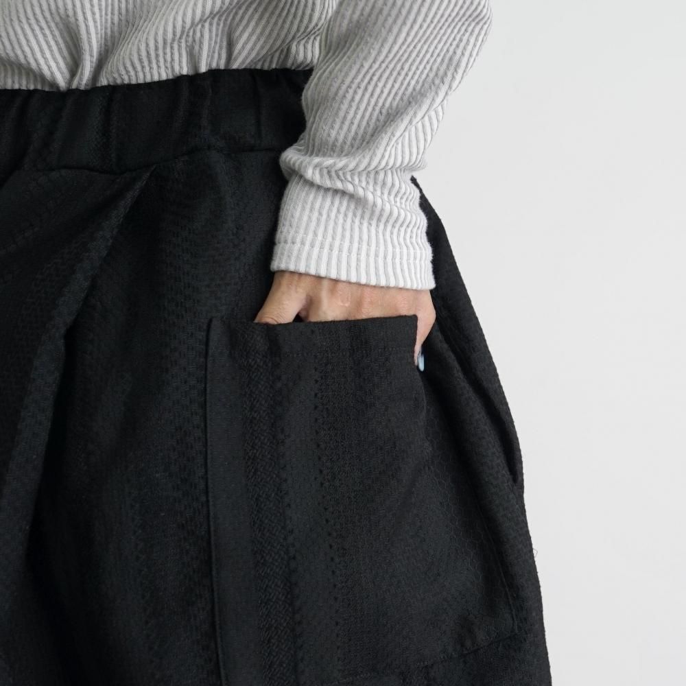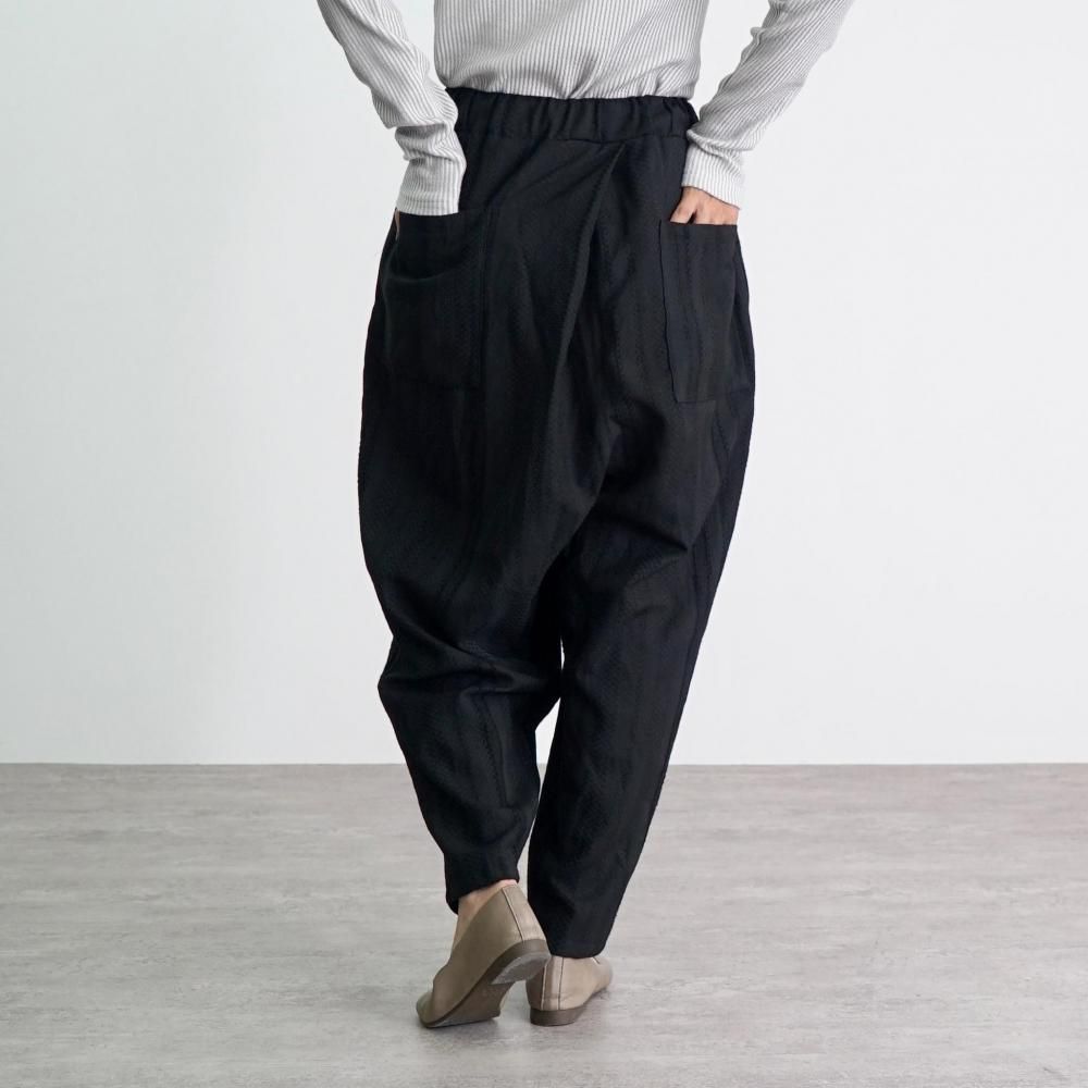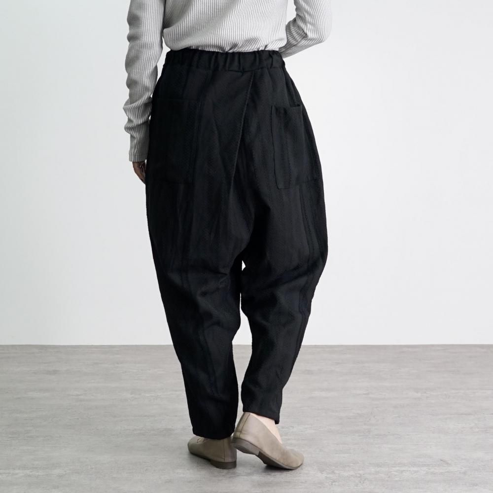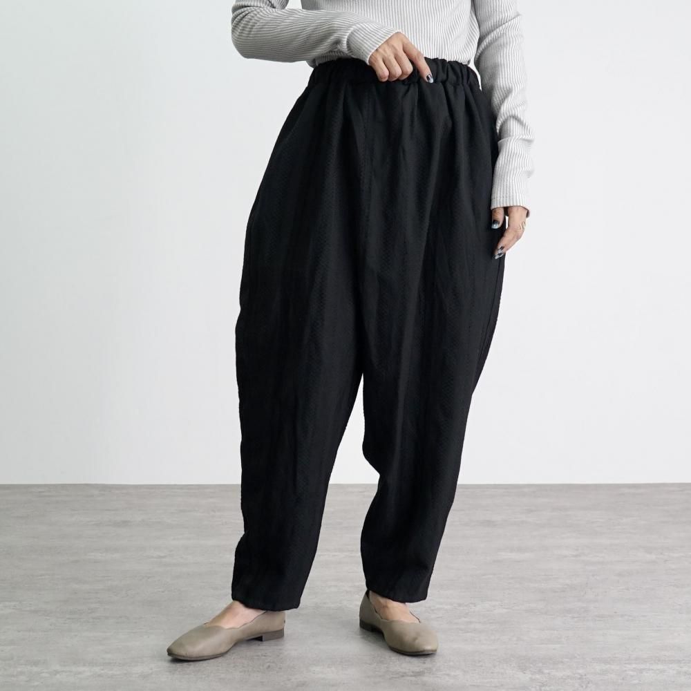 ペグトップタックパンツ/黒ストライプ/尾州織物
