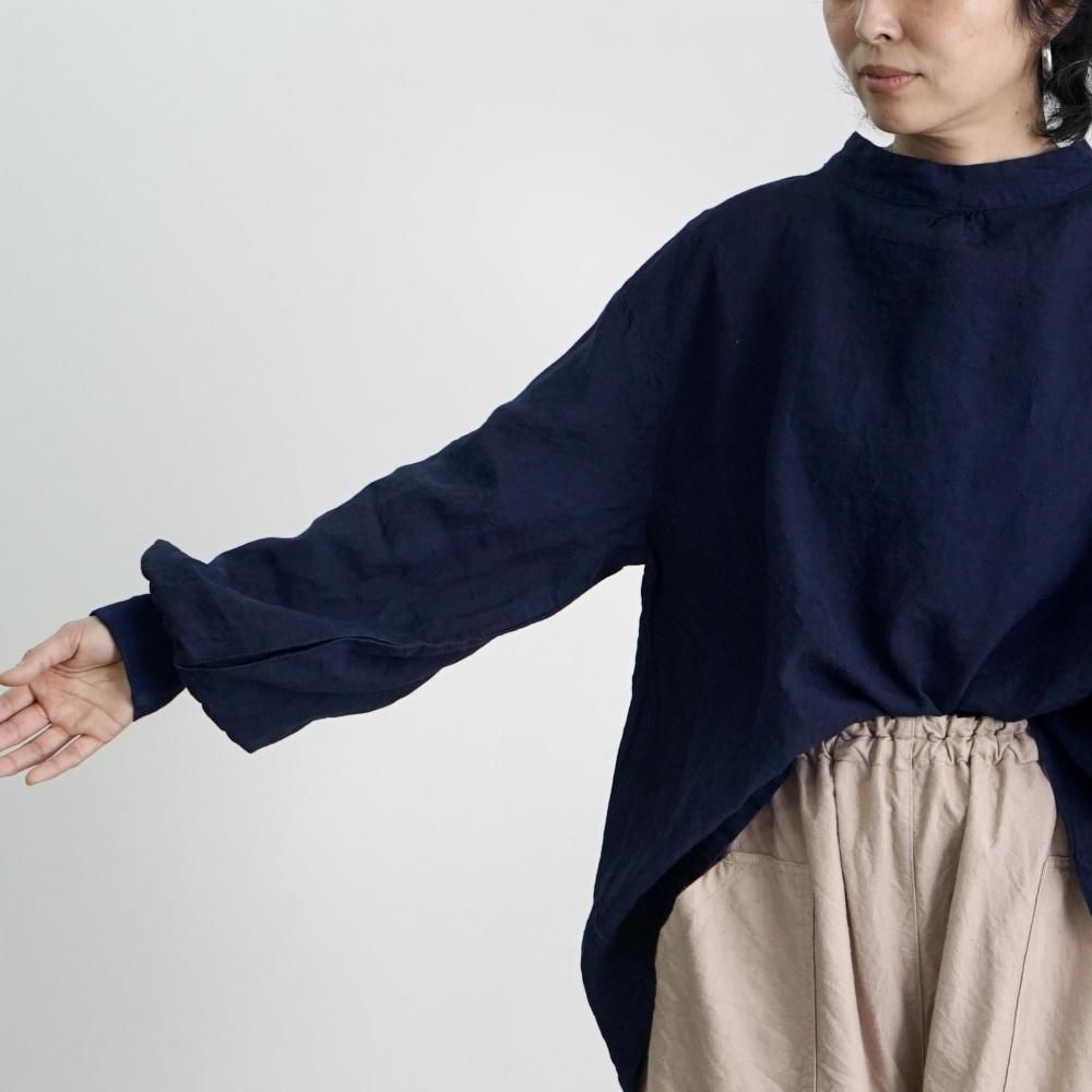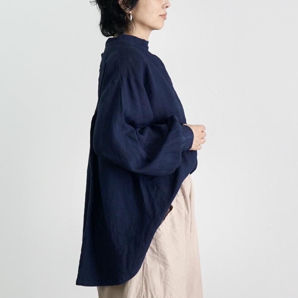 リネンタックシャツ/ネイビー/遠州織物