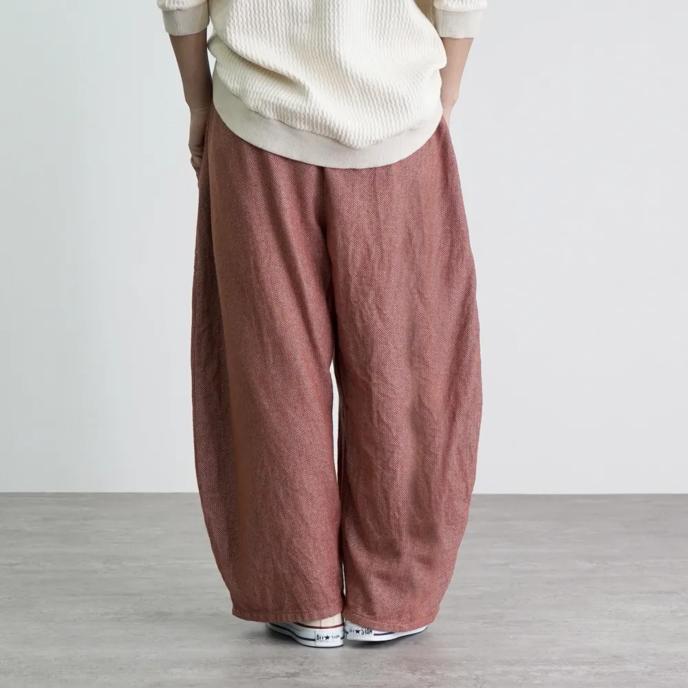 ヘリンボーンバルーンパンツ/コーラルレッド