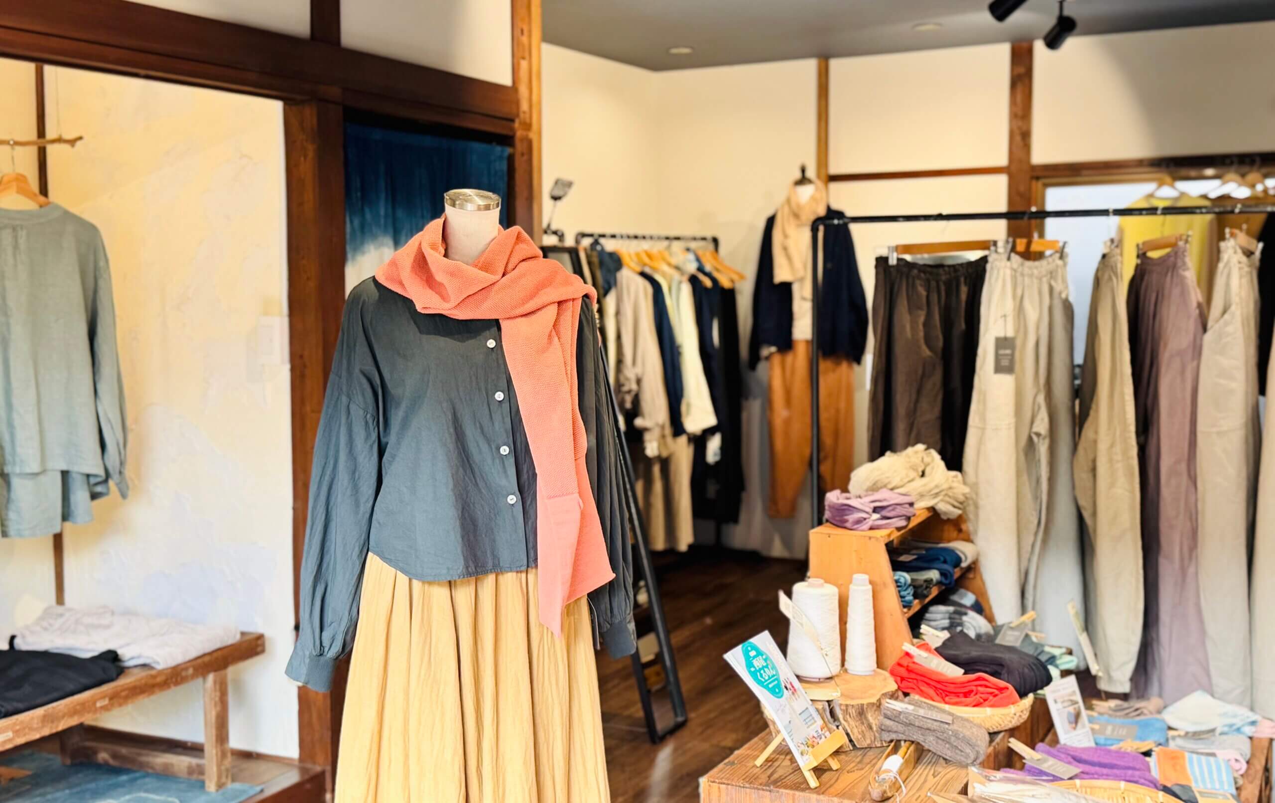 オンラインでは伝えきれなかったさまざまな素材、縫製や染色の空気感、服作りに懸ける私たちの熱意、そして私たちの地域。それらすべて、UZUiROの服ができる空間にて紹介いたします。