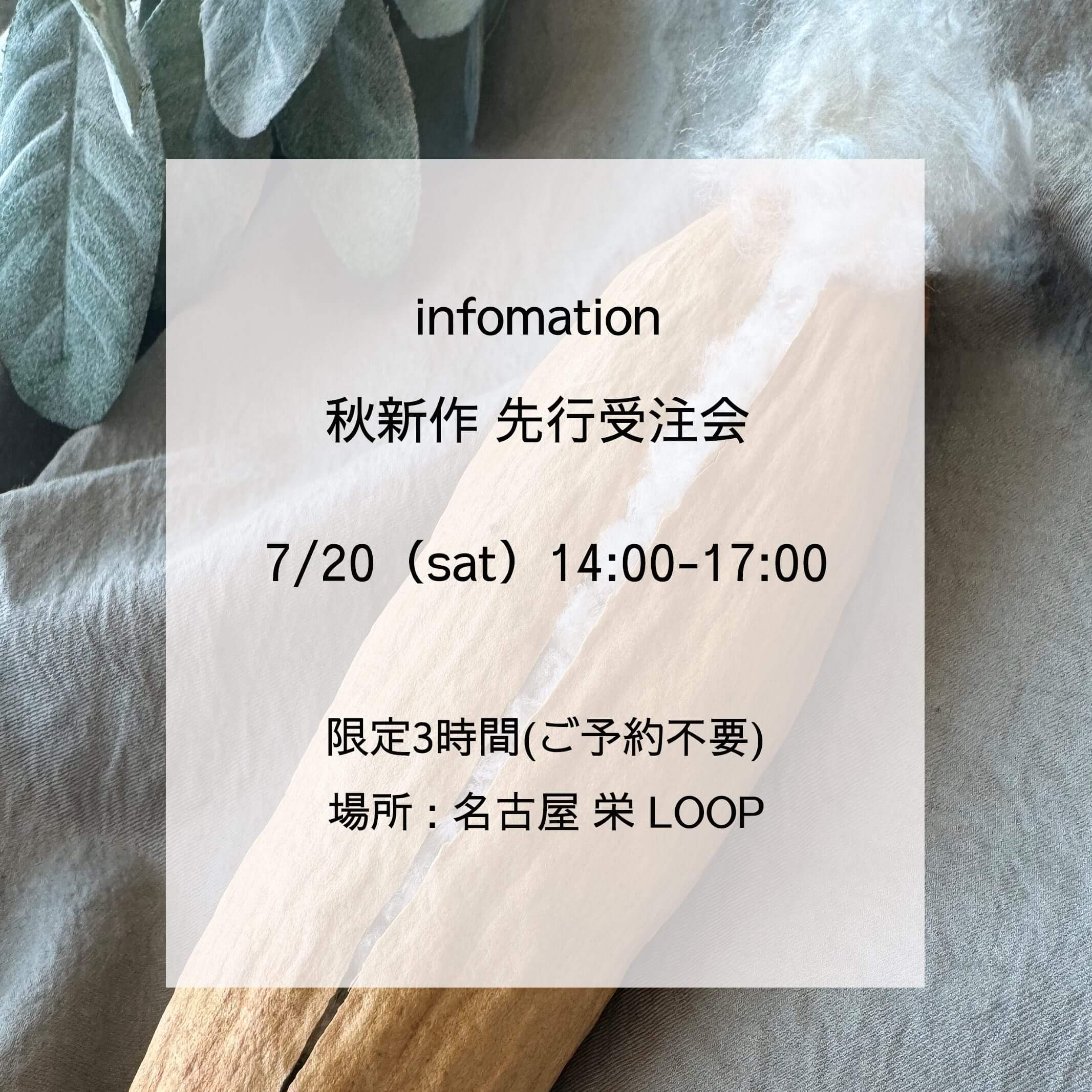 イベント情報2024秋の新作、先行受注会でお得にGET!7/20(sat)14:00-17:00 限定3時間お見逃しなく!2024.07.06