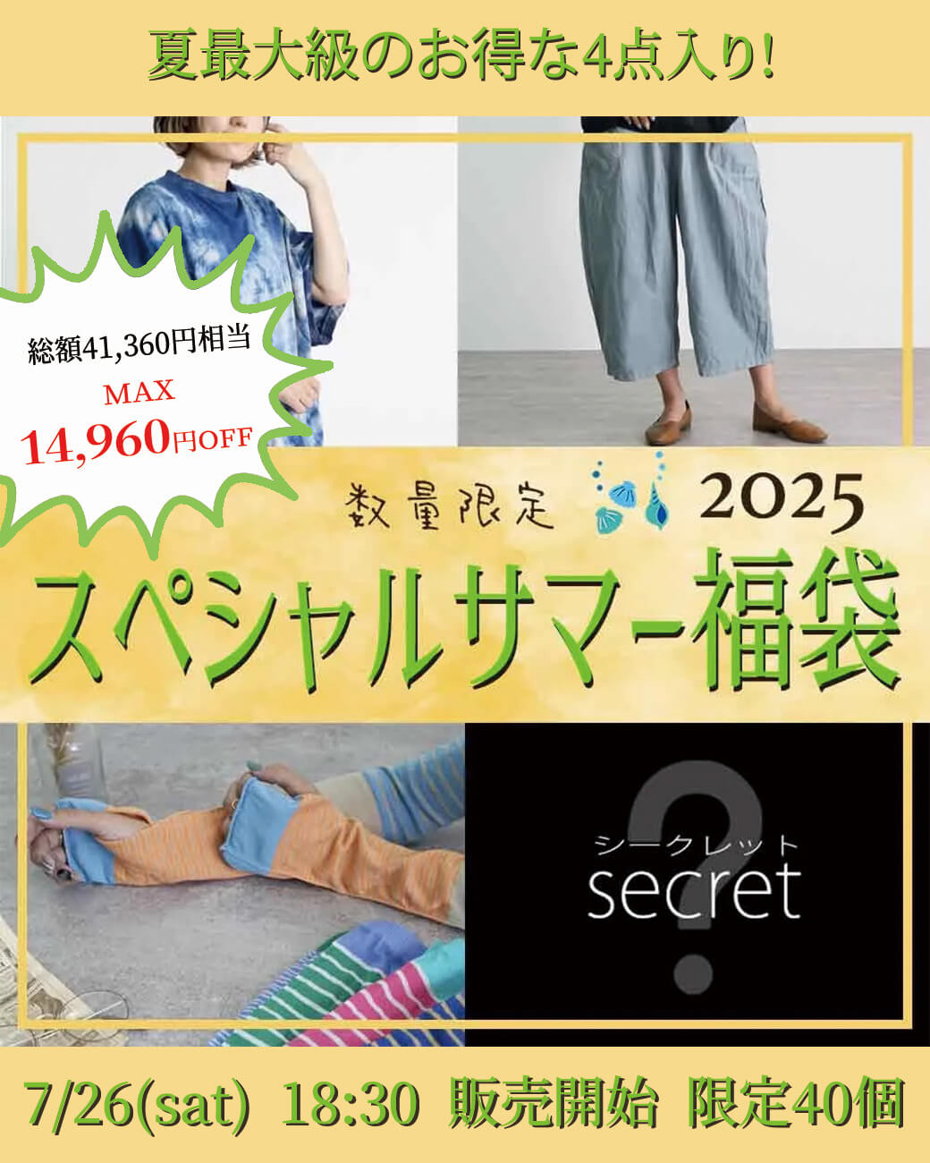イベント情報【7/26(sat)18:30解禁】40個限定!スペシャルサマー福袋が今年も登場🌿2025.07.26