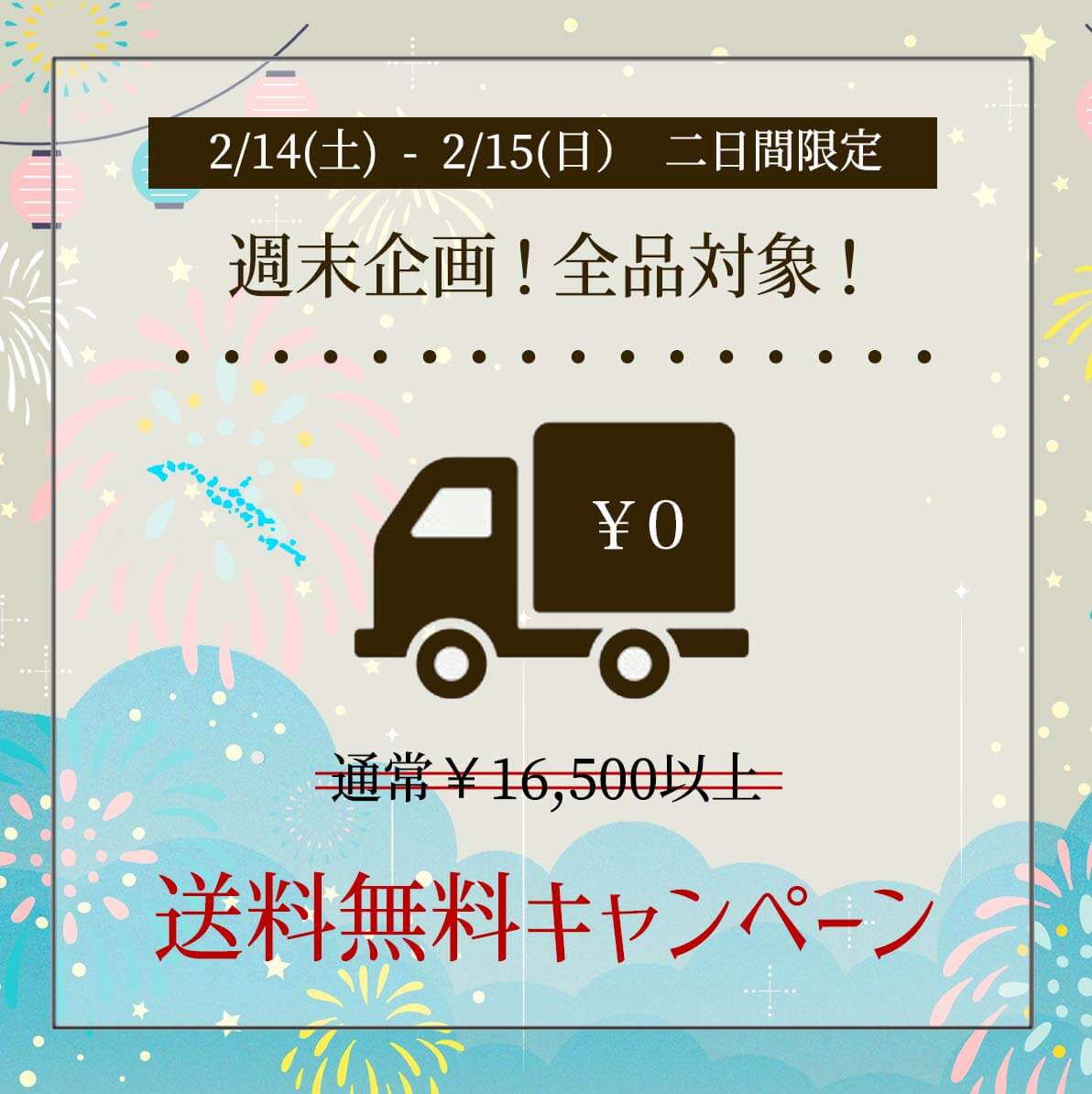 イベント情報2日間だけ、 送料、無料!にします。2026.02.13