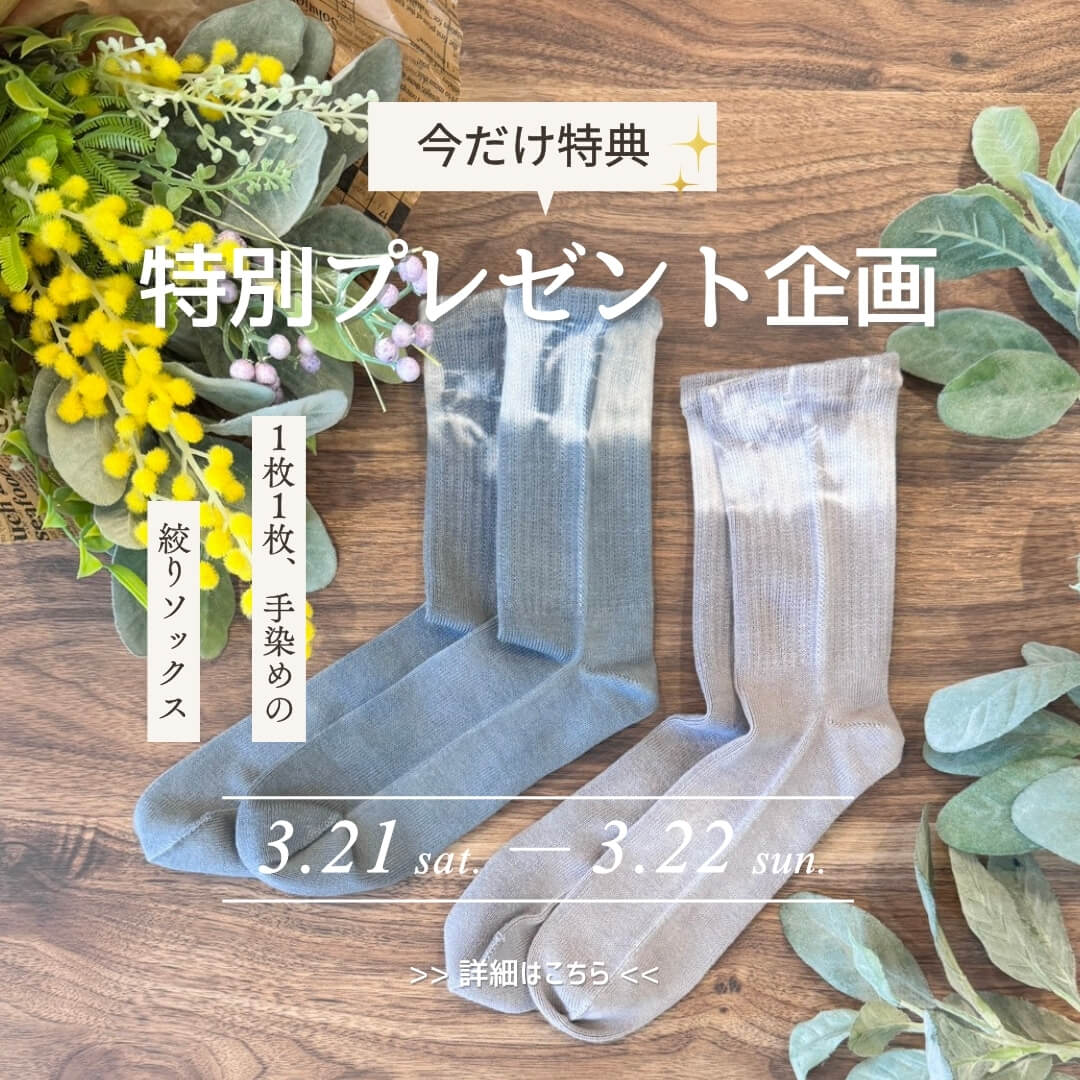 イベント情報【週末限定】先着50名様|絞り染め限定ソックスが0円でもらえるキャンペーン!2026.03.21