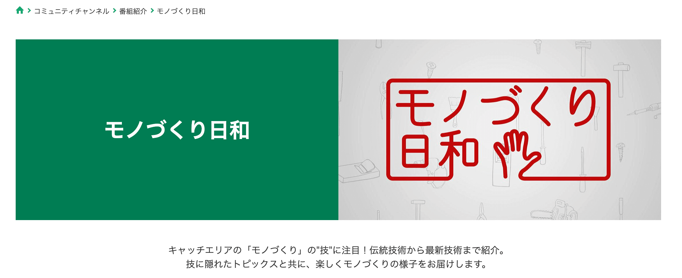 メディア掲載キャッチ「モノづくり日和」に登場いたします。2020.05.01