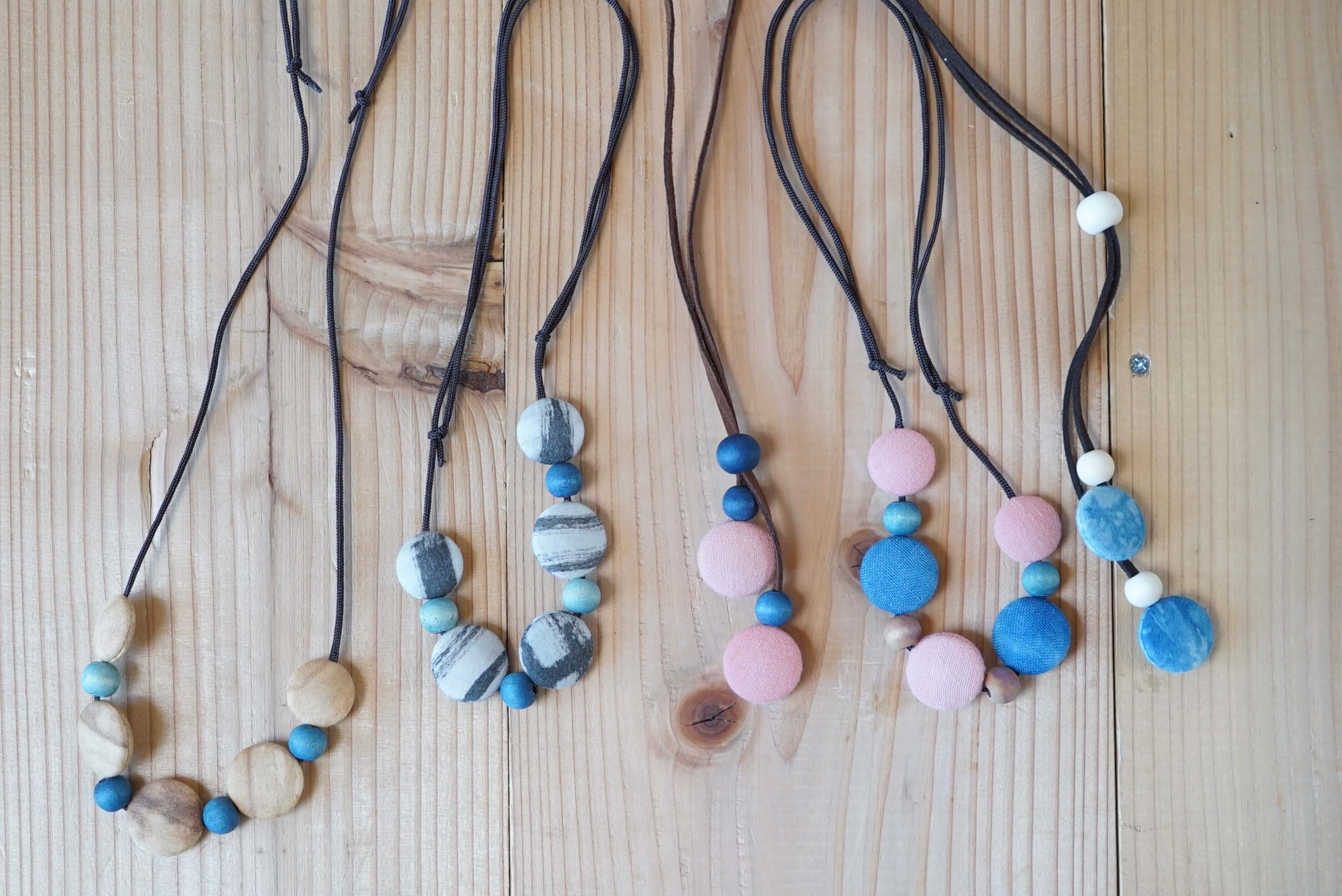 いろんな生地や、たくさん草木染めの色合いから選べる。
