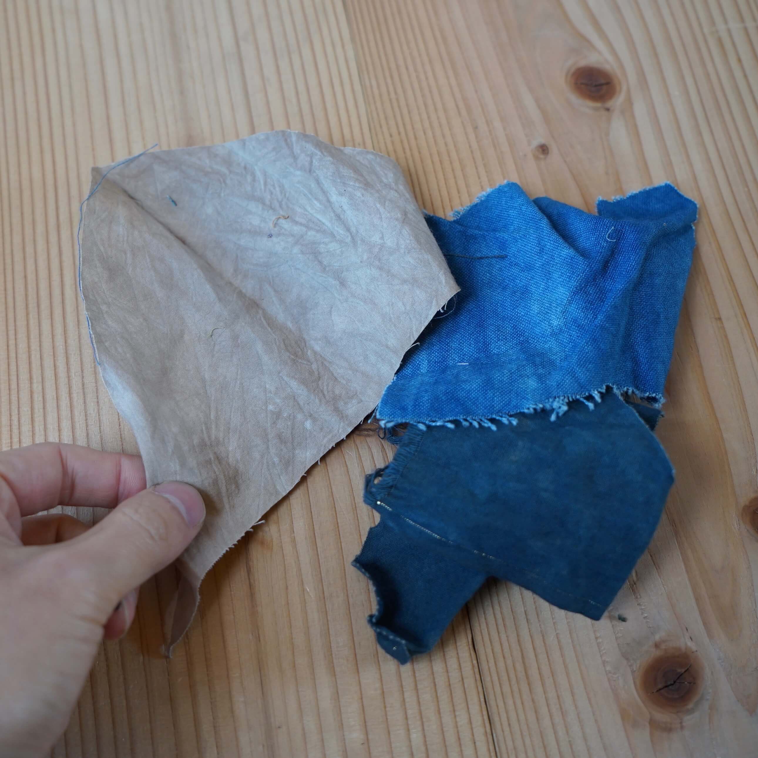 ということで、草木染めされた生地を、細かく、いろんな色や種類を詰め合わせて