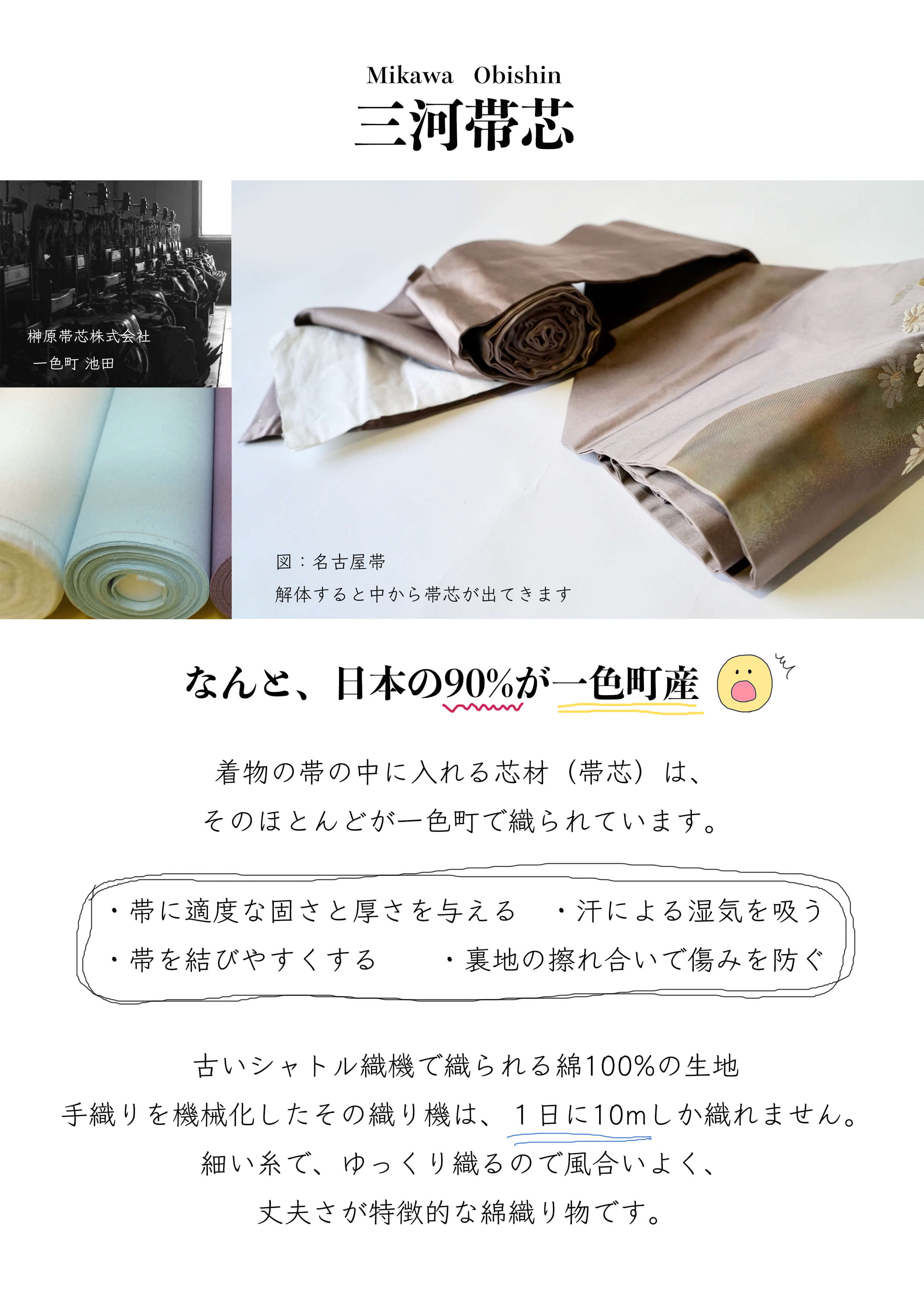 「”三河帯芯”の全国生産量の90%以上がこの一色町内で織られている」のをみなさん知っていませんでした。