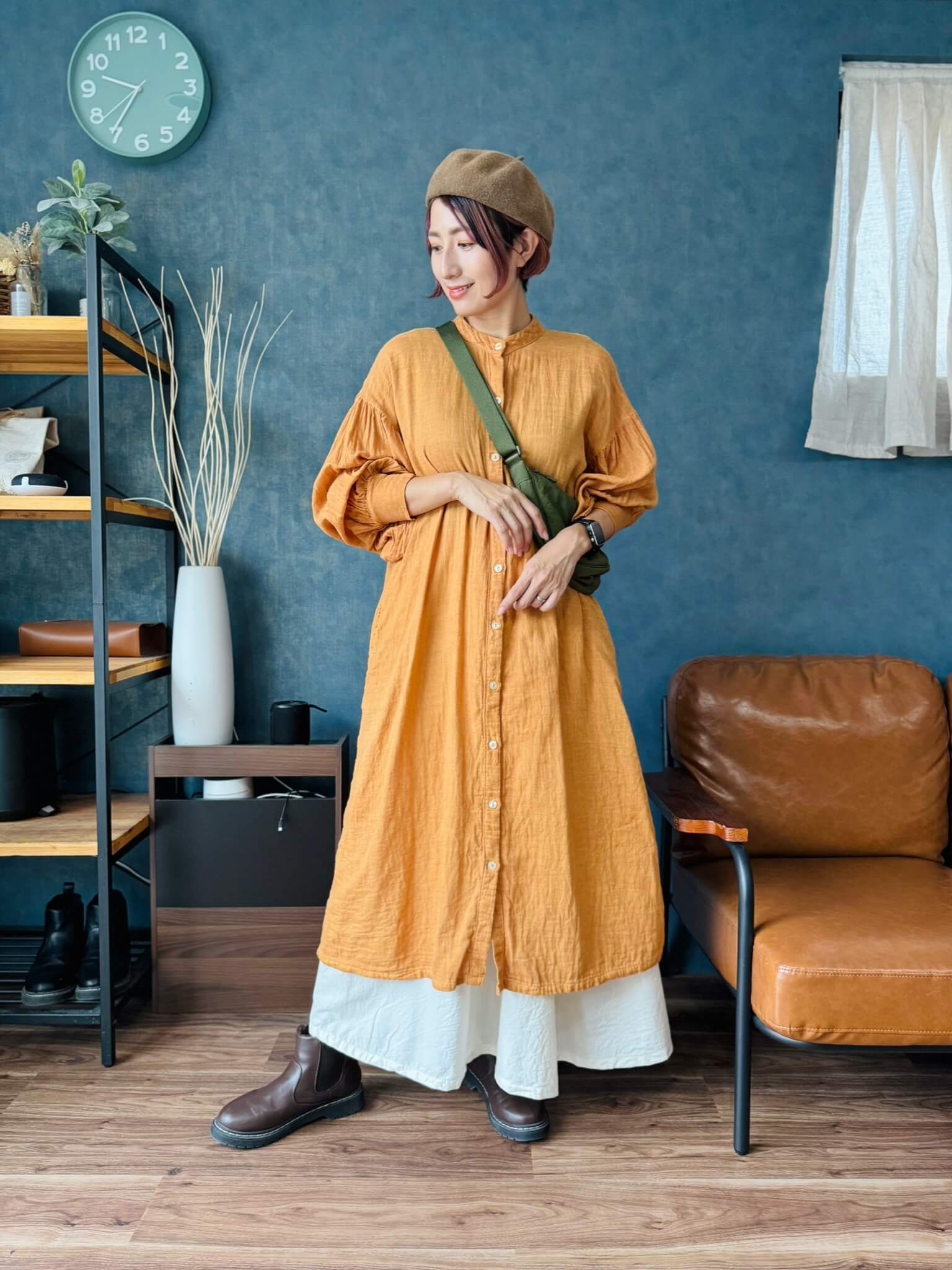 3重ガーゼは、通年で着られる人気素材として、ロンTやチュニック、ワンピースなど多くの定番アイテムに使われています。
