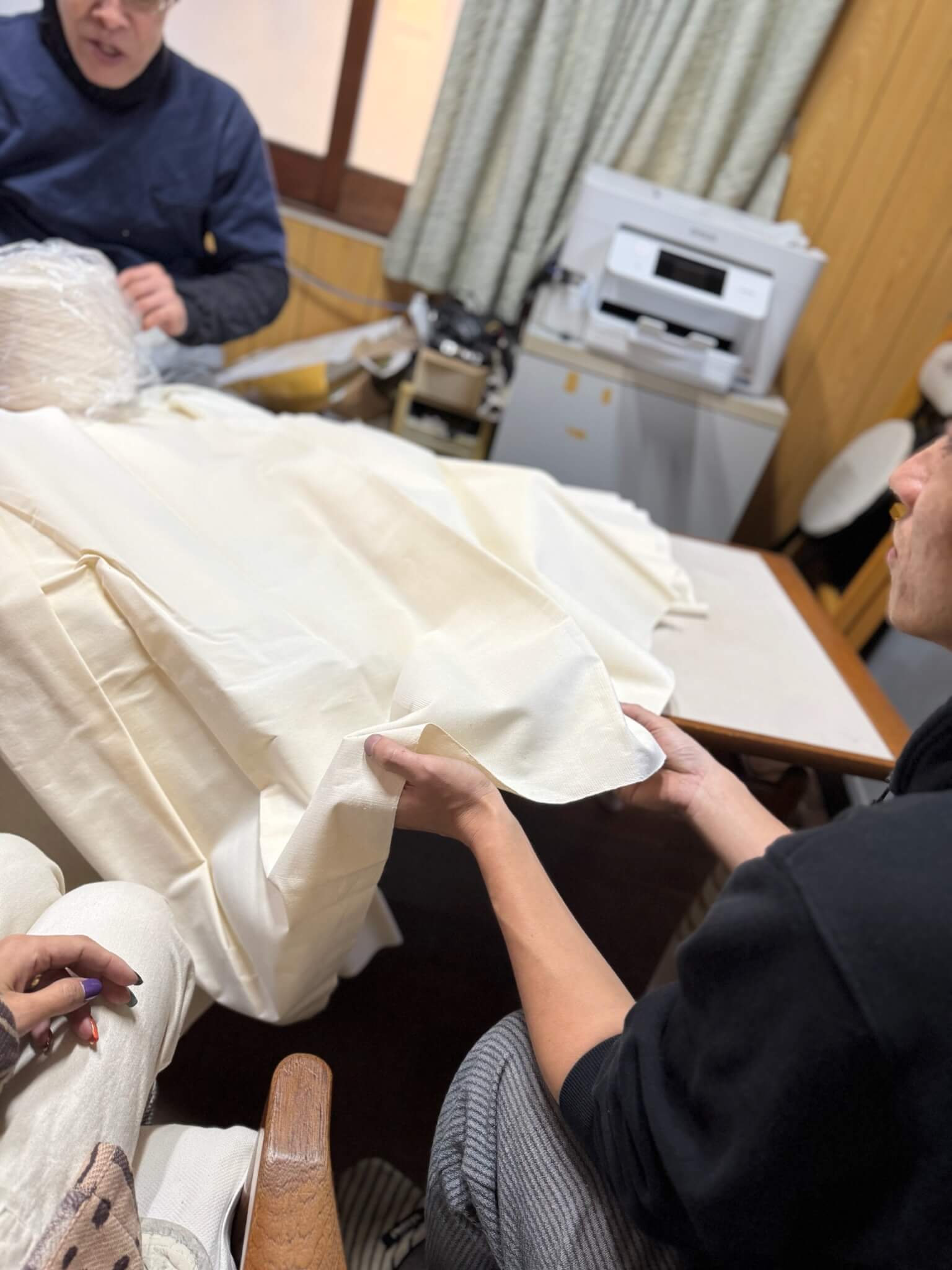 「服にするの?」と驚かれながらも、完成したサンプルのワンピースを見て、「これがあのガーゼで?」と職人さんたちも目を丸くされていました。