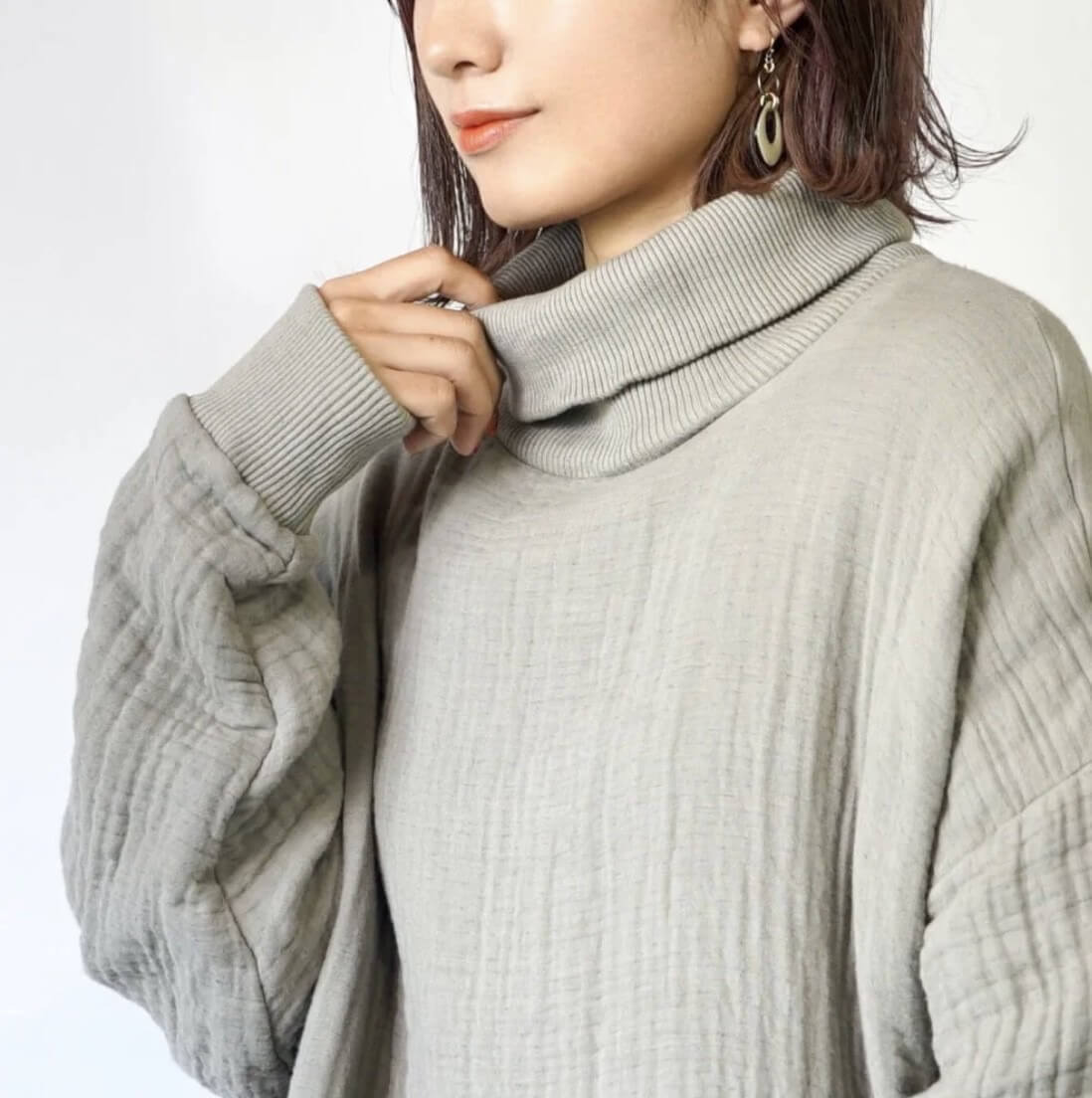 タートルネックトレーナー もこもこ6重ガーゼ/ 三河織物 13,750円(税込)