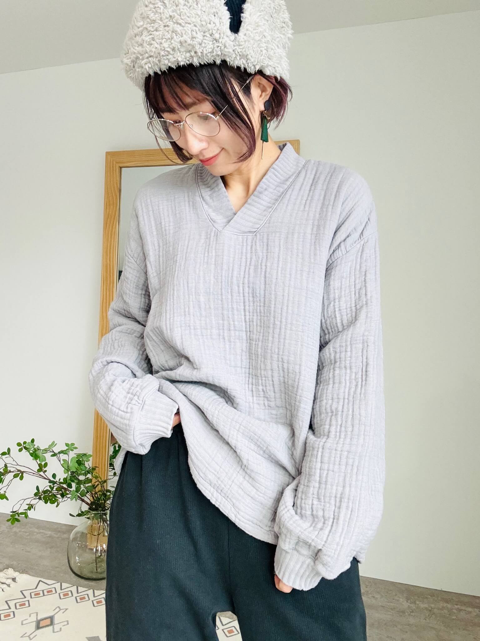 Vネックもこもこガーゼプルオーバー/ライトグレー/三河織物6重ガーゼ 13,750円(税込)