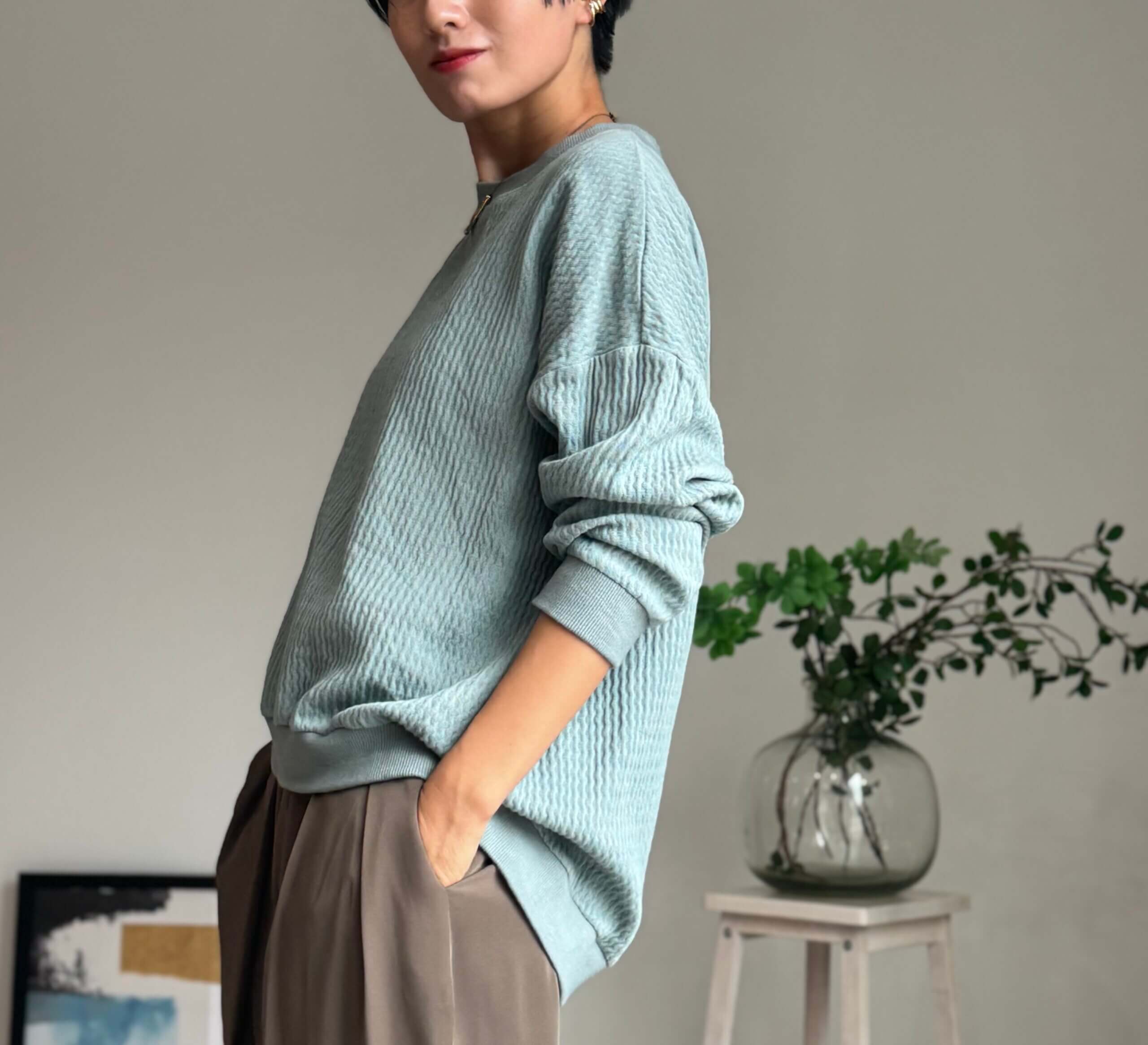 トップス : ショートラウンドトレーナー/知多木綿 柄ハンプ