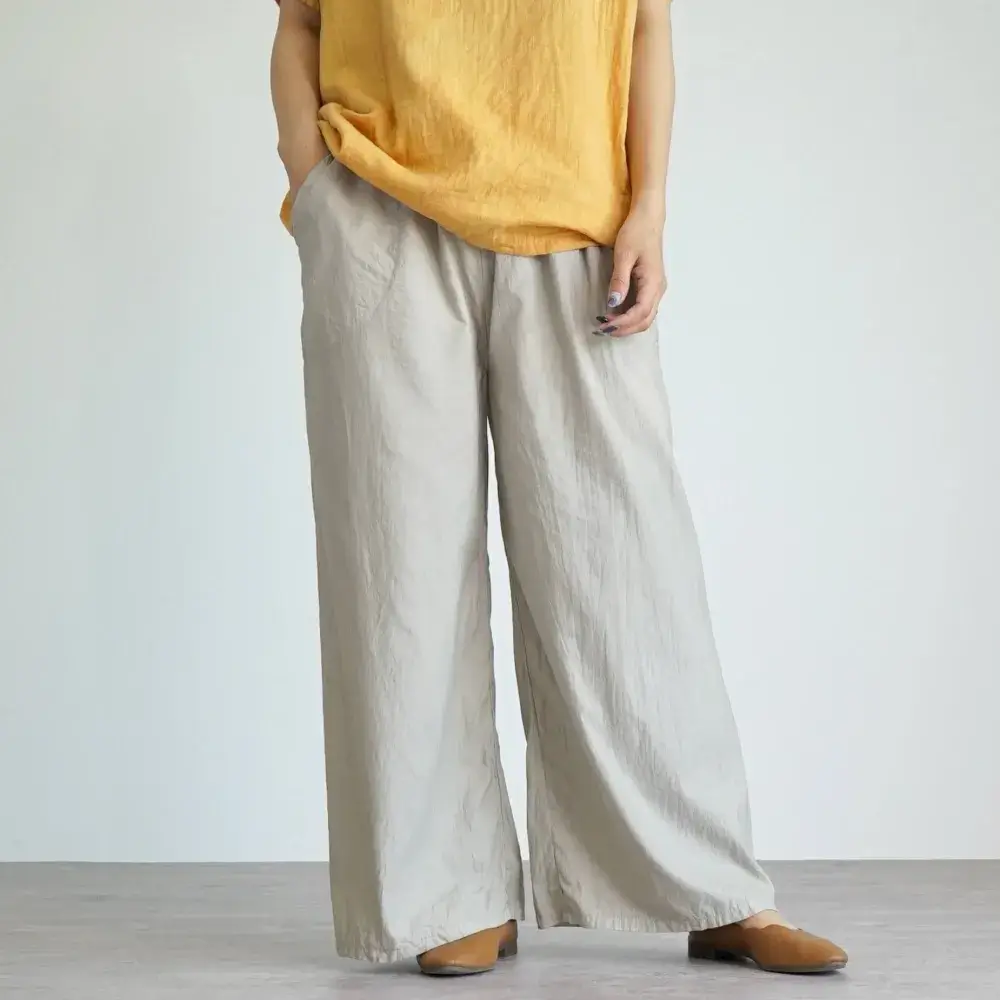→ワイドパンツを合わせることで重心が安定し、安心感がアップ
