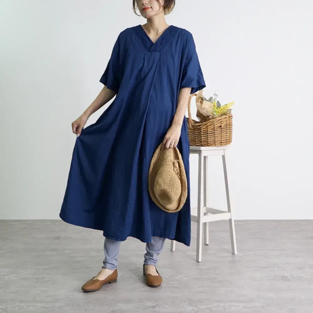 バルーンタックガーゼTシャツ/ネイビー/知多木綿ダブルガーゼ