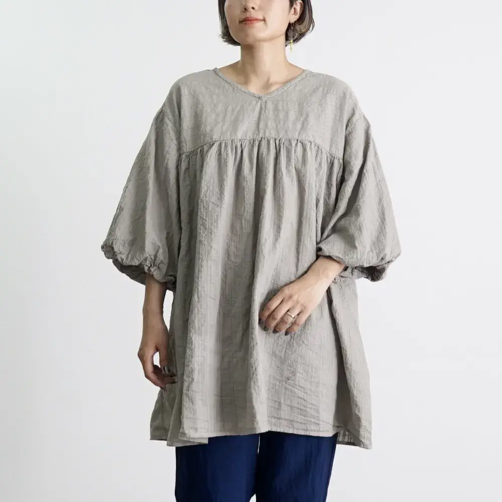 2wayバルーンスリーブチュニック/カーキ/絡み織ストライプ 13,860円(税込)