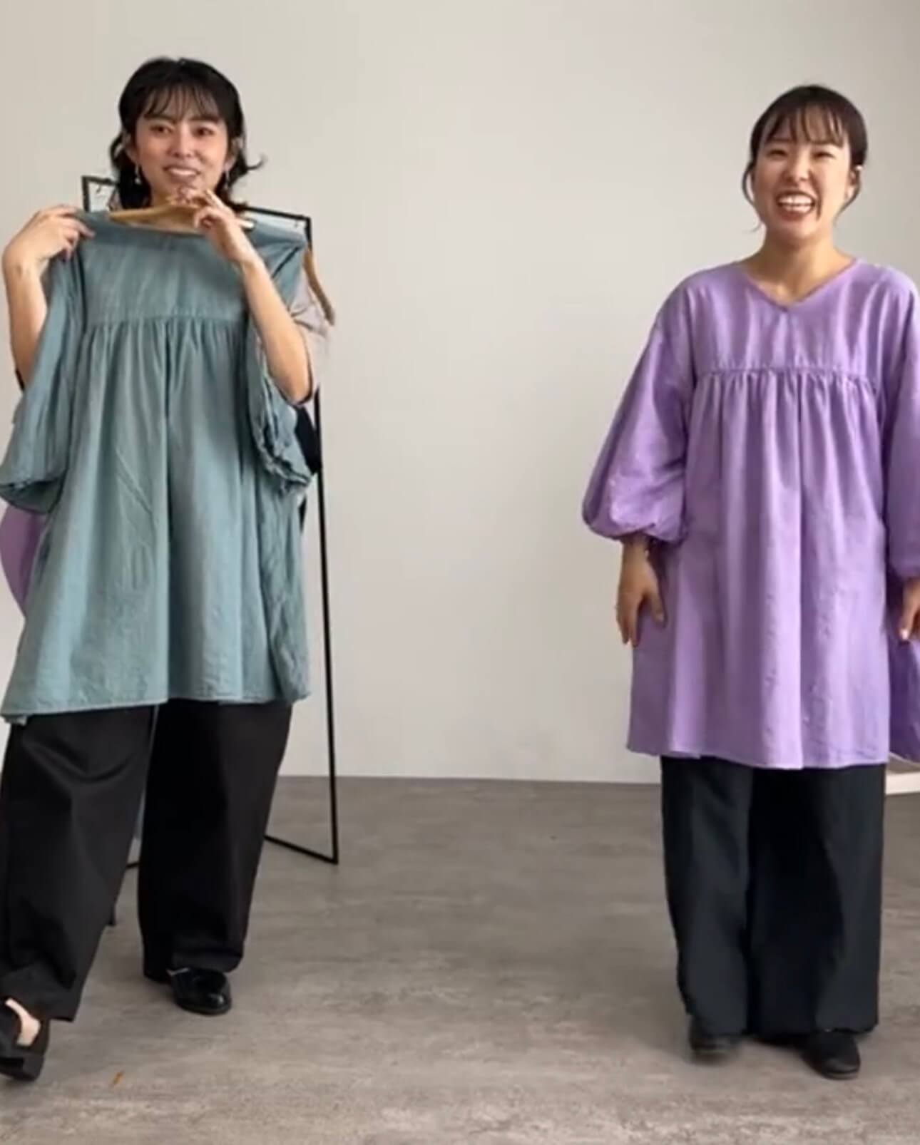 火曜12時から安心インスタライブでは、158cmと152cmのあやぱんとチハルが同じアイテムを着比べています。