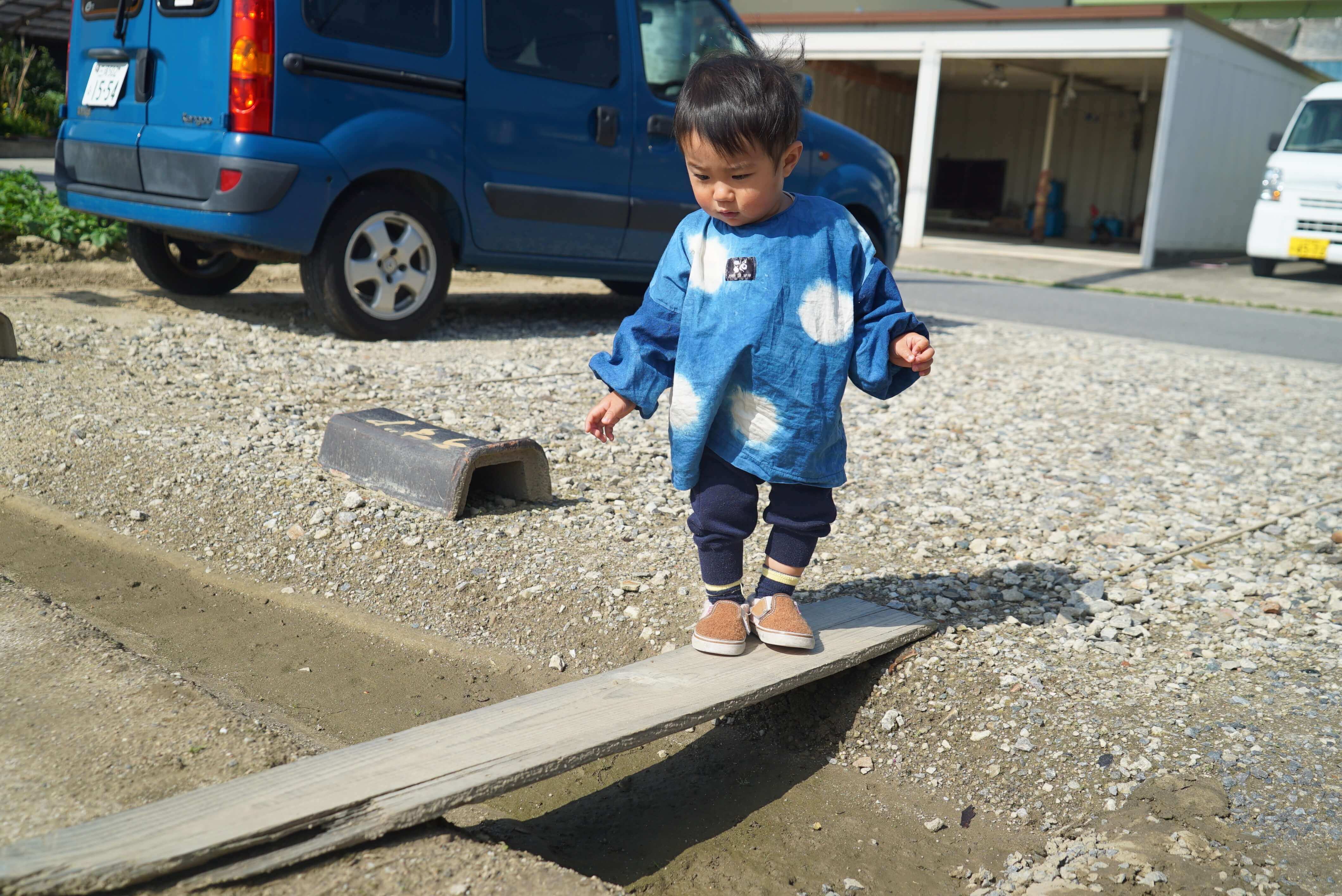 よろよろ、、、ファーム(畑)へはこの橋が難関だ、、、