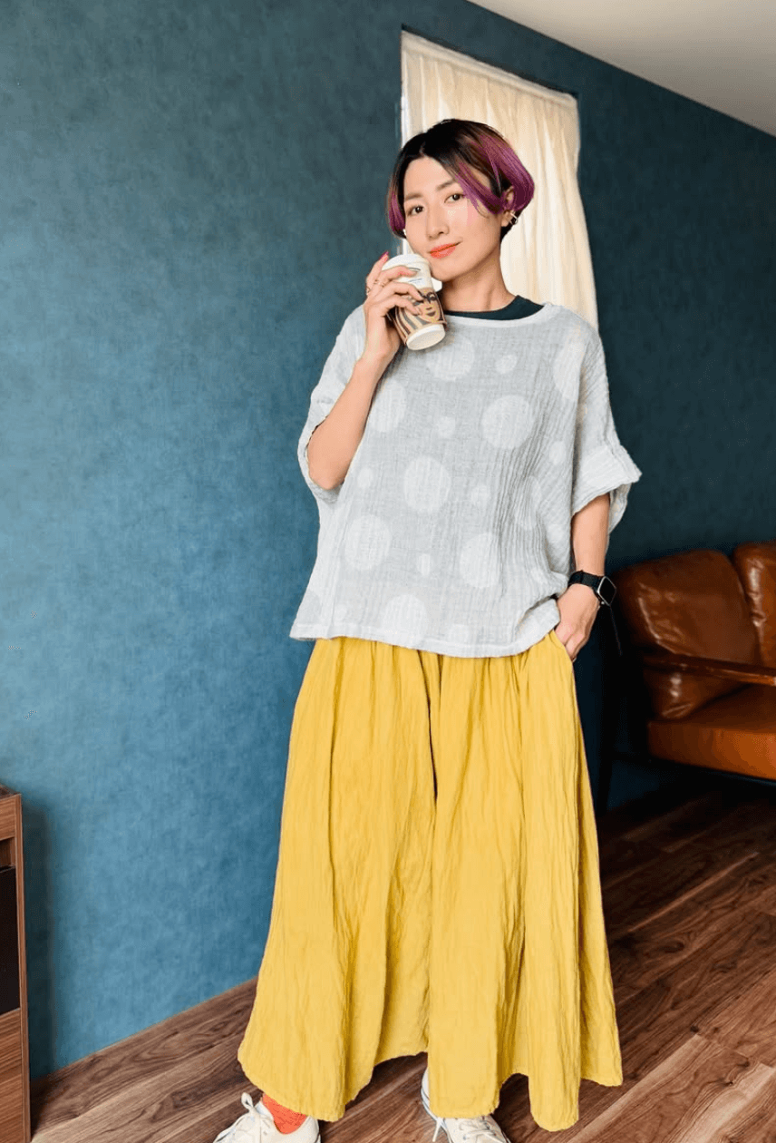 コーデ : ウールガーゼドットTシャツ/ライトグレー/尾州織物