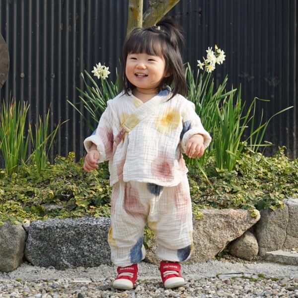 (長袖 ベビー甚平/にじみ水玉/知多木綿)